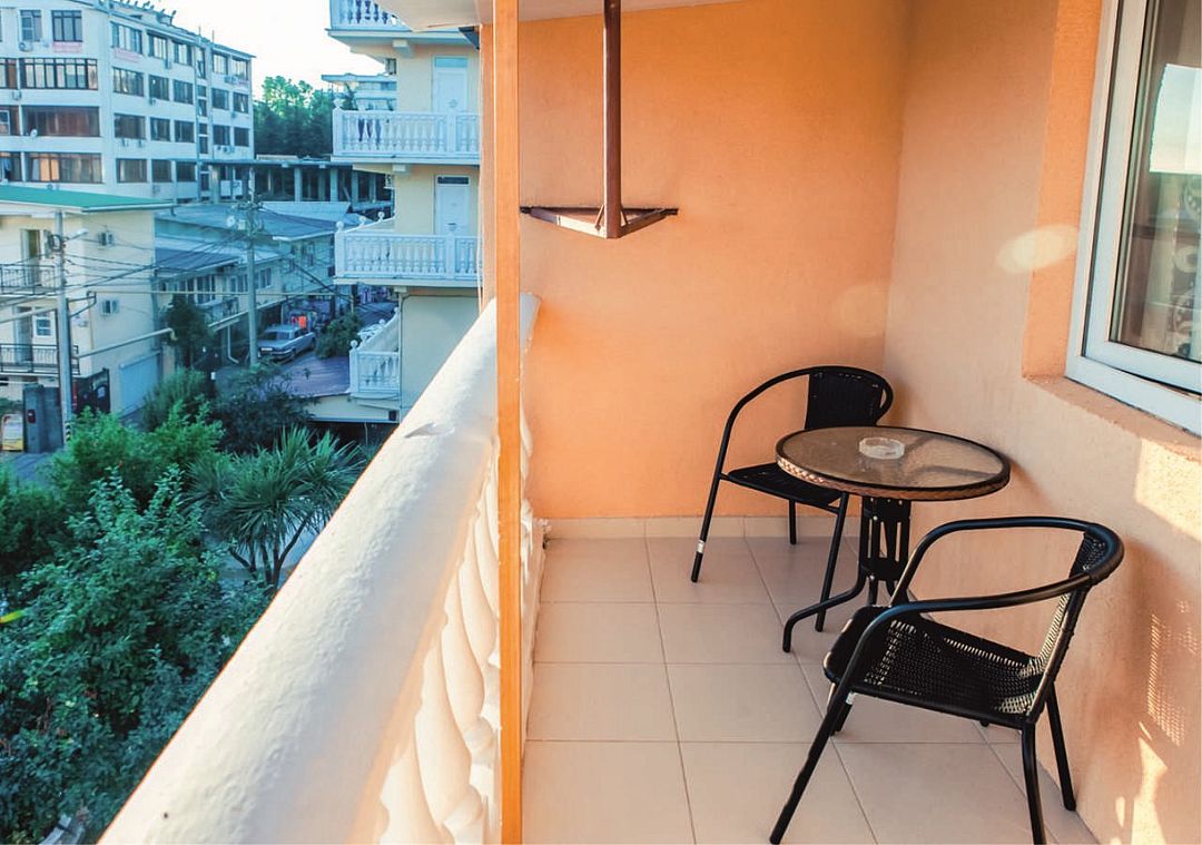 Wi-Fi, кондиционер, светильник, санузел, банные полотенца, гигиенические средства, балкон, две односпальные или большая двуспальная кровать, тумбы, шкаф для одежды, вешалки, журнальный столик, багажная тумба, зеркало, душ, вид во двор, стул, туалетный столик, туалетные средства, цифровое тв, раскладное кресло, телевизор с плоским экраном, мини-холодильник, можно с питомцамиВ гостиничном номере
