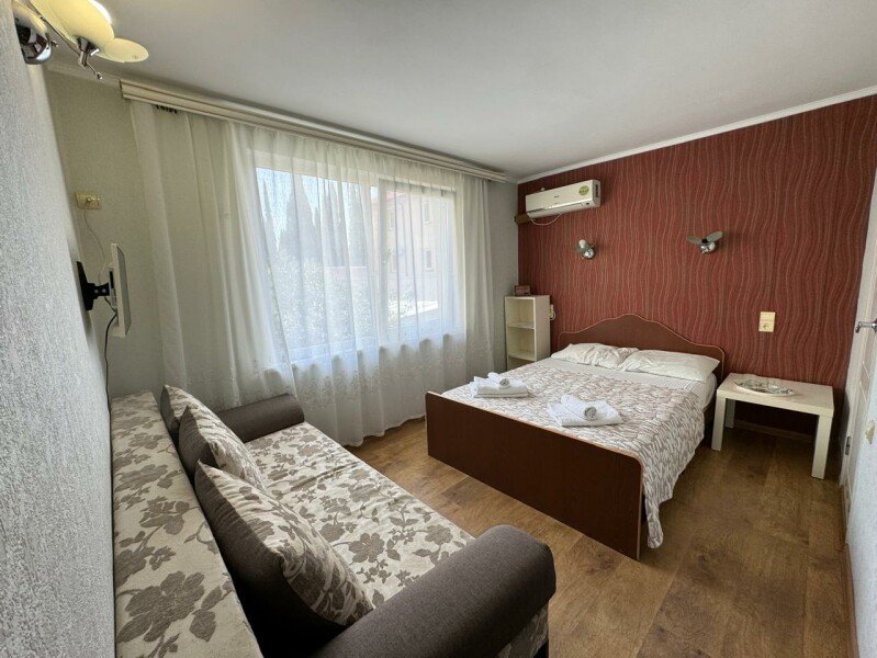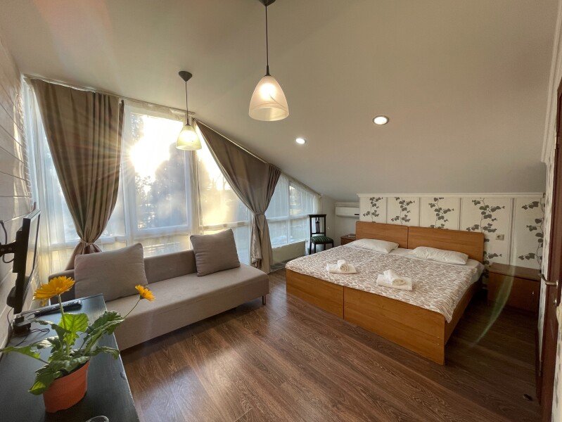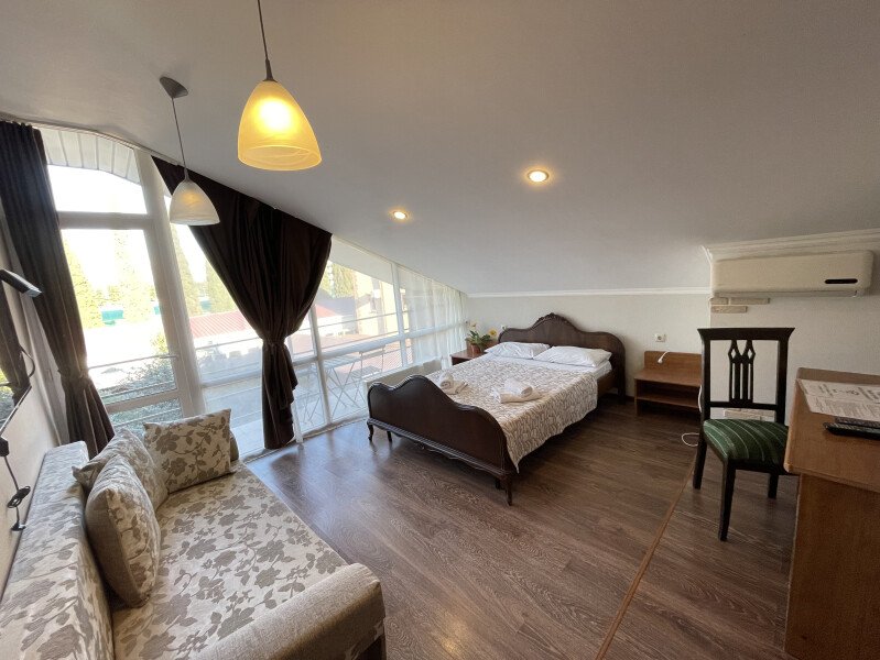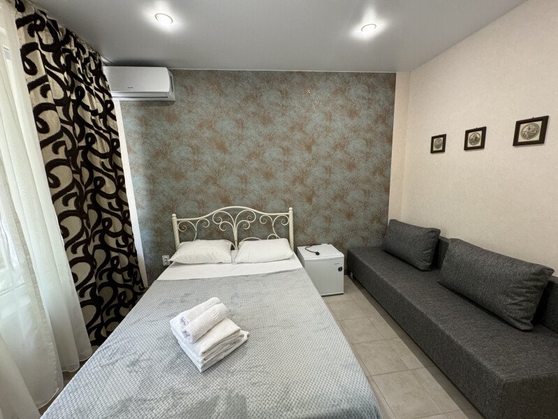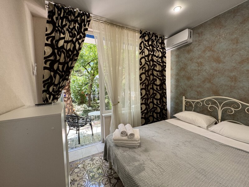 Гостевой дом располагает 12 стандартными номерами с удобствами, кондиционером, телевизором ЖК со Smart TV, интернетом Wi-Fi. На территории расположена общая кухня.