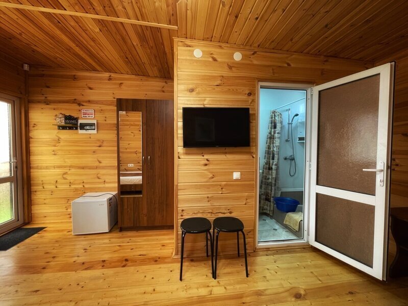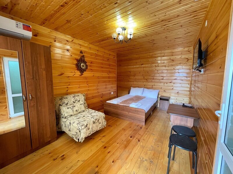 Двуспальная кровать + кресло-кровать, с/у, душ, ТВ.
