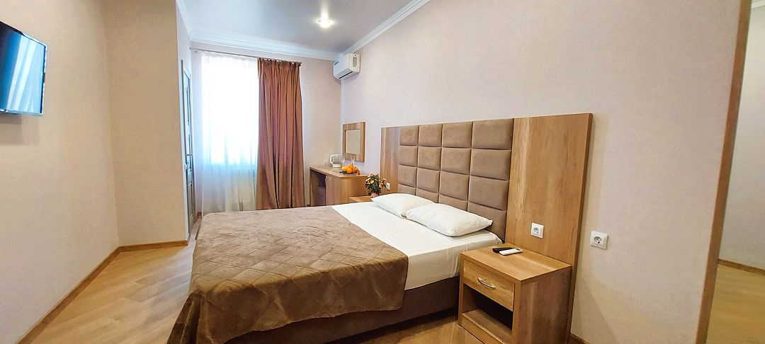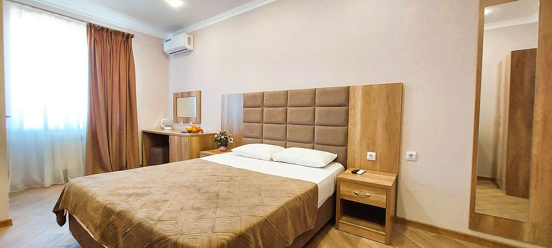 В пользование предоставляются: комфортабельные спальные места, шкаф и прикроватные тумбы для личных вещей, сплит-система для регулирования температуры. В ванной комнате установлен душ, есть фен и набор полотенец. ЖК-телевизор и бесплатный Wi-Fi разнообразят досуг.