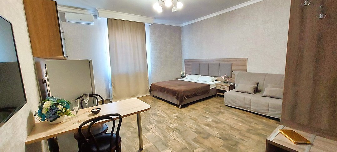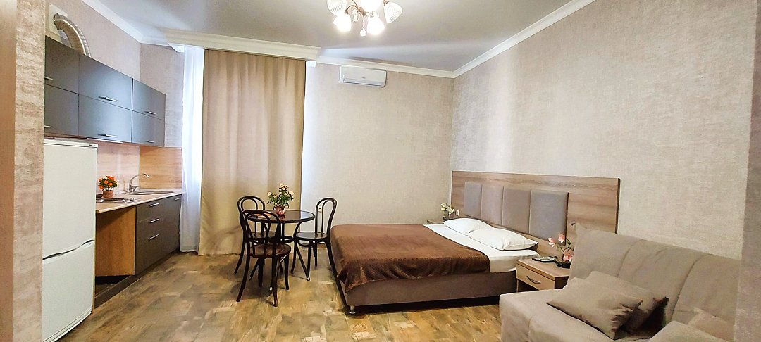 Недалеко находятся такие занимательные места, как вещевой рынок «Эстакада» и пляжи на любой вкус. Рядом — остановки общественного транспорта, которые позволят быстро добраться до любой части города. Расстояние до аэропорта — 7,4 км, до железнодорожного вокзала — 32,9 км.