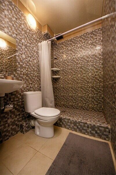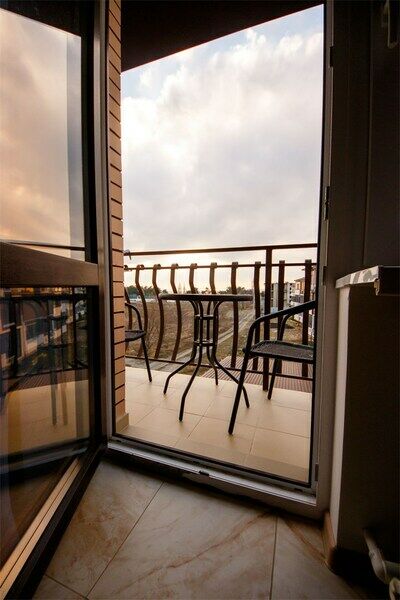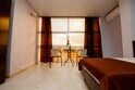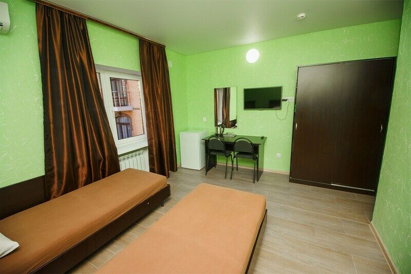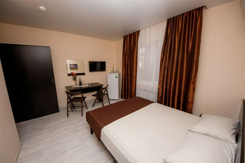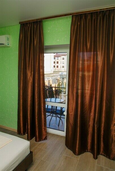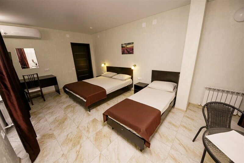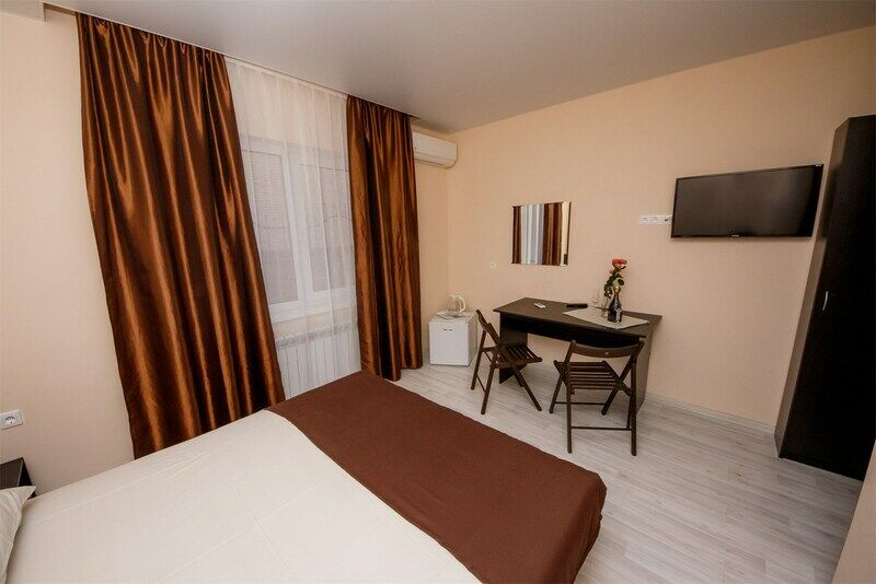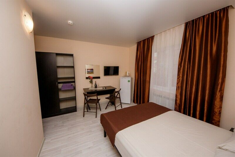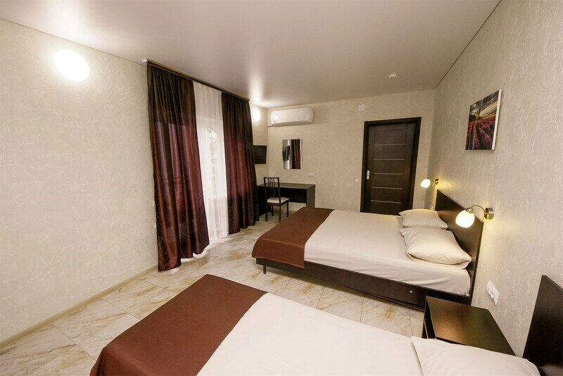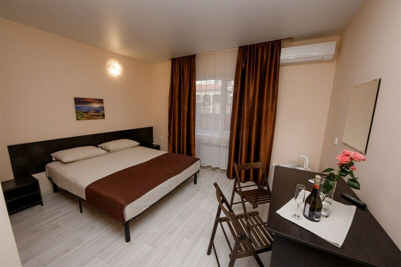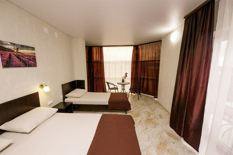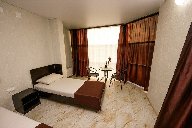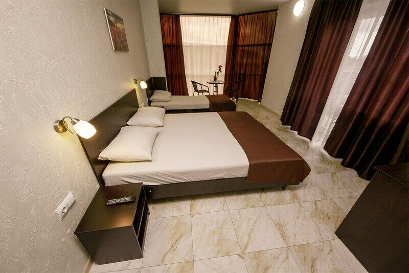 Трехэтажный кирпичный корпус отеля находится на закрытой территории всего в 500 метрах от моря. Гостей ожидают номера разной вместимости, площади и категорий: есть бюджетные варианты в цокольном этаже, а есть просторные номера с балконами. Везде при этом имеется индивидуальный санузел и установлена сплит-система.
