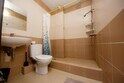 В 10 минутах ходьбы разместился поселковый галечный пляж. На побережье много водных развлечений, есть навесы от солнца, лежаки, шезлонги.