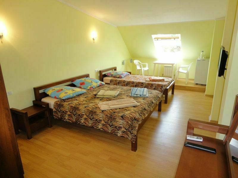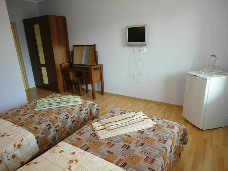 Трехэтажный дом имеет несколько типов номеров, что является большим плюсом для гостей, при выборе уютного номера. Помимо комфортной мебели, номера оснащены бытовой техникой, телевизором и холодильником. Неподалеку от дома имеются магазины и кафе. В 7 минутах ходьбы расположен чистый галечный пляж, а если на пляж идти лень, можно прекрасно охладиться знойным деньком в открытом бассейне, который находится на территории.