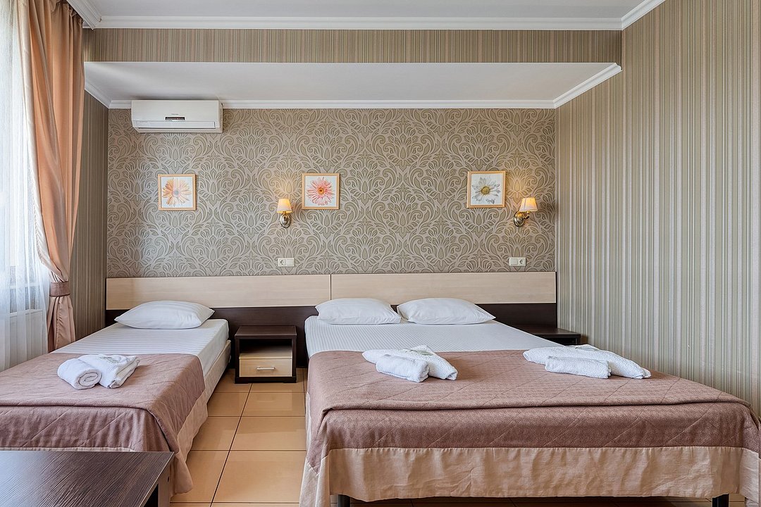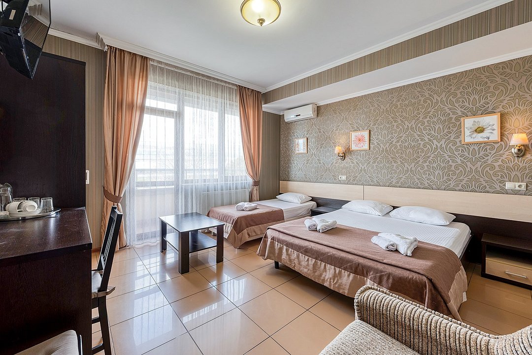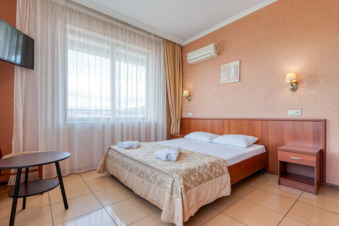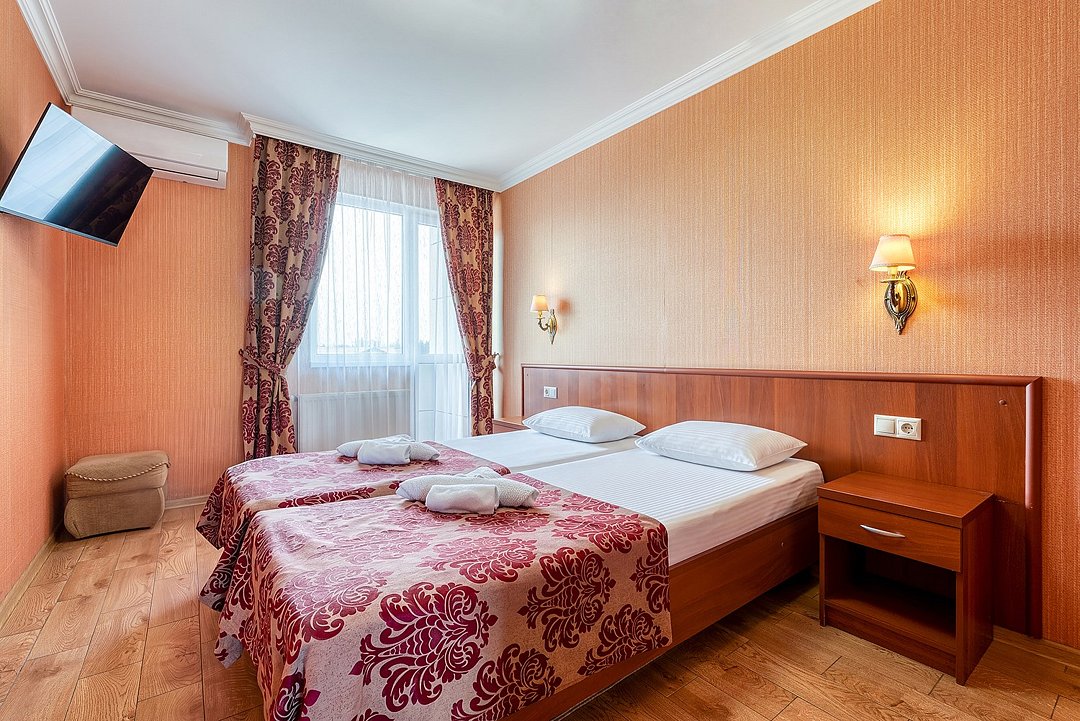 Путешествие с паройОтель на 5-ку, рядом с аэропортом.Сразу видно , что владельцы отеля подошли с душой к своему отелю.В номере есть холодильник, ТВ, кондиционер, душ, туалет, на кроватях белоснежное белье,гели, шампуни,шторы Blackout, чайник.Как чудесно чирикают птички за окном.Все просто идеально.Единственный минус , рядом летают самолёты, т.к. аэропорт находится в 3 км.Иногда это доставляет дискомфорт ночью, опять кто спит очень чутко.Одновременно это является и плюсом, можно быстро добраться до аэропорта.На общественном транспорте 2 остановки.Но и самое главное - рядом пляж Огонек , чистый , благоустроенный.Вообщем хозяева отеля стараются, очень важно в отеле царит порядок, никаких пьянок, гулянок.Все тихо, спокойно и безопасно!!!