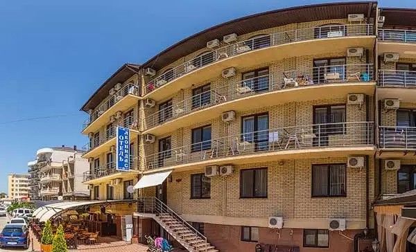 Отель Леонидас находится в центре поселка Витязево (Анапа) — в его первой курортной зоне: в 800 метрах от морского побережья, добраться до которого можно пешком за семь-восемь минут.