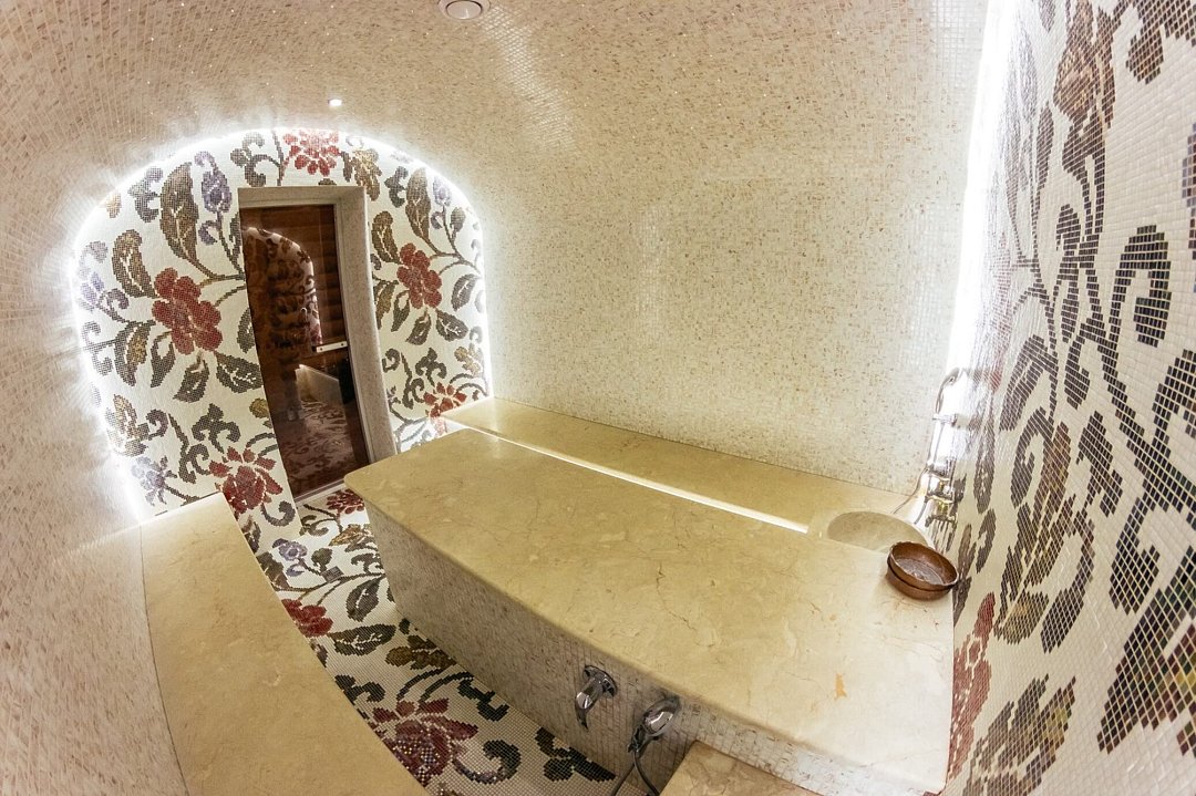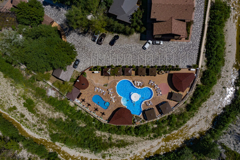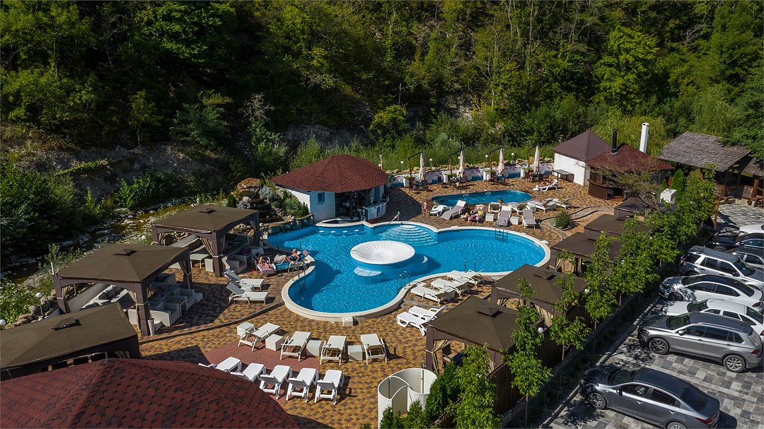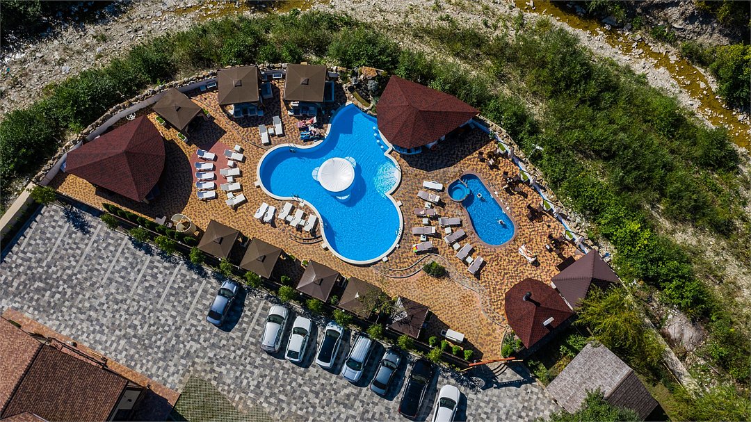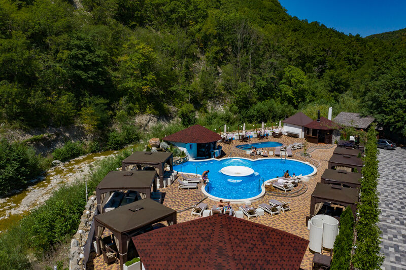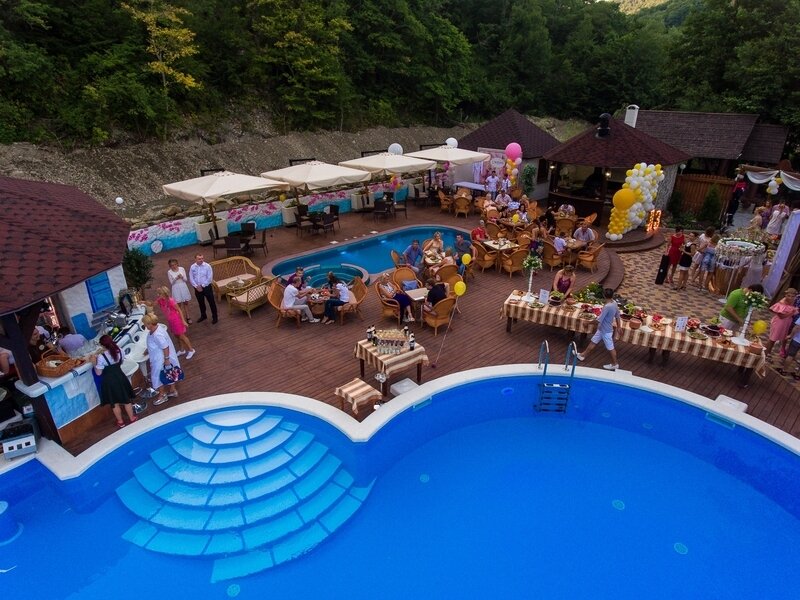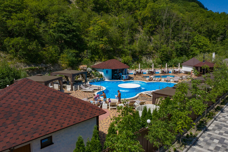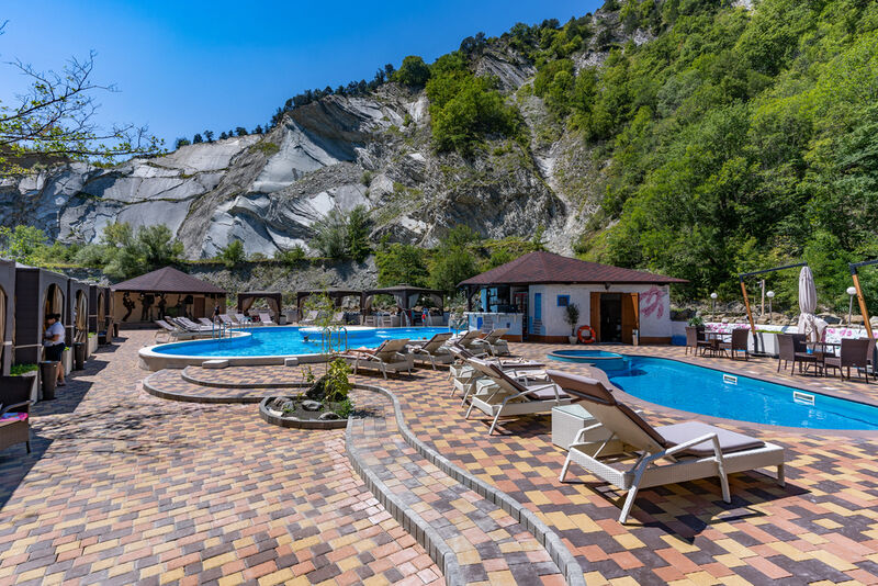 Тип бассейна: открытый бассейнВода в бассейне: подогреваемый бассейнРядом с бассейном: шезлонги, зонтики, полотенца, бар у бассейнаТемпература в бассейне: 35 °CНаслаждаться водными процедурами в термальном бассейне можно круглый год благодаря поддержанию комфортной температуры воды. Для удобства гостей предусмотрены отапливаемые зимние беседки-сферы, вместимостью от 8 до 24 человек. А летом – уютные беседки на 8-12 человек и столики с обслуживанием официантами по меню ресторана.
