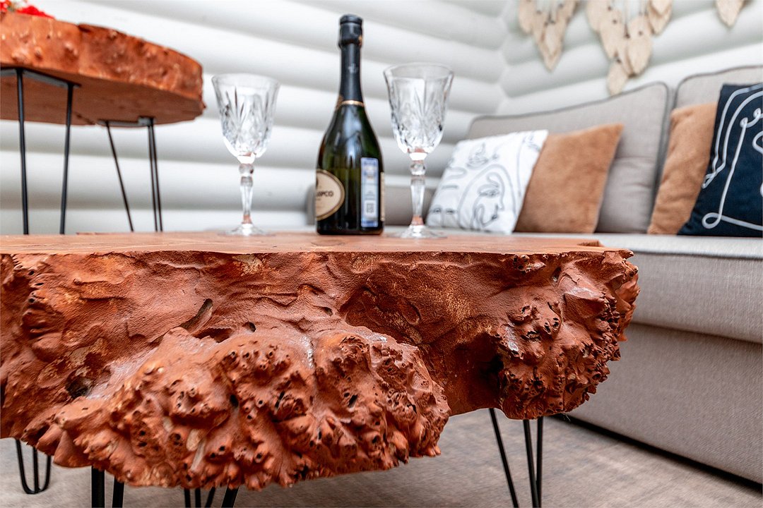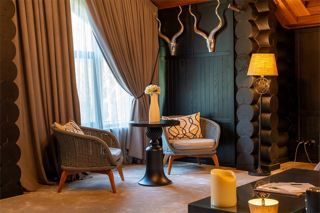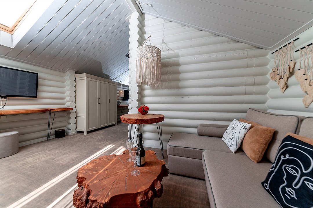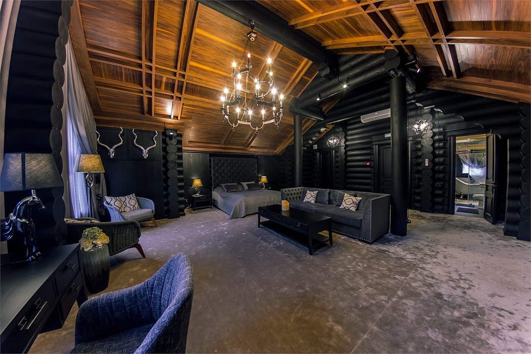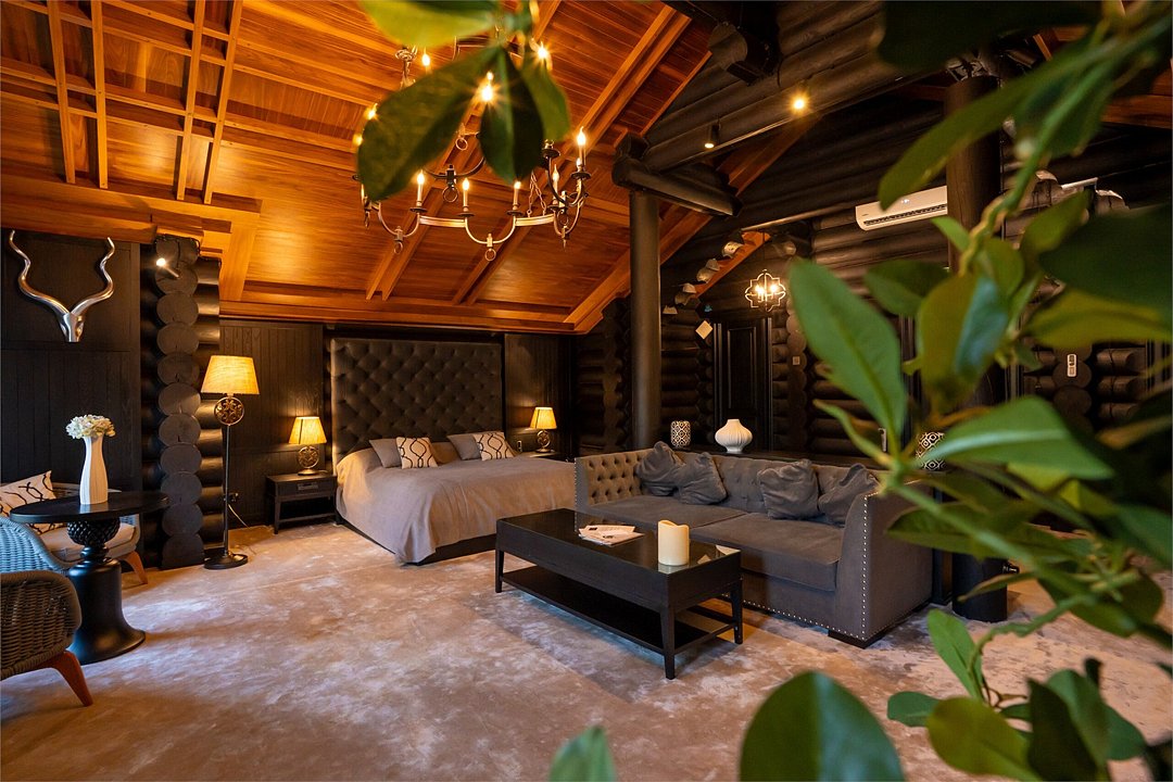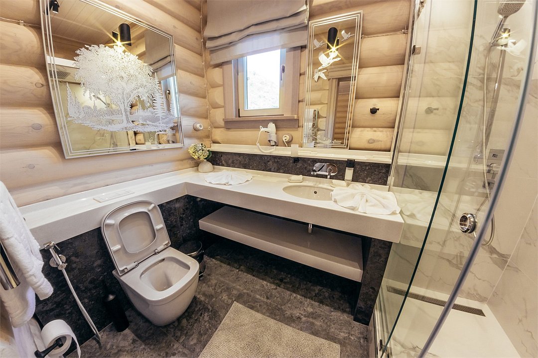 Мы рады предложить Вам удобные и уютные двухкомнатные номера категории "люкс" площадью 56 кв.м. Номера расположены на вторых этажах срубового дома и обладают индивидуальными выходами на балконы, что позволяет насладиться свежим воздухом и прекрасным видом на горы и зелень. При неизменной роскоши каждого из люксов, каждый из них обладает неподражаемым дизайном. Вы сможете выбрать для себя тот люкс, который особенно подходит вам и станет излюбленным местом для отдыха. Теплая цветовая гамма, уникальная комплектация, дизайнерская мебель создают особенную атмосферу в номерах. Стильная и просторная гостиная с мягким диваном и уютная спальня с комфортной кроватью, ванная комната и вся необходимая техника, имеющаяся в наличии , будут способствовать незабываемому отдыху.Услуги и удобства