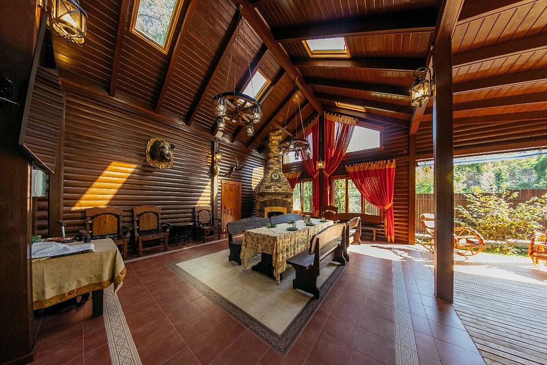 Мы рады предложить Вам удобный и уютный двухкомнатный номер категории "люкс" площадью 56 кв.м. Номер рассчитан на 2 взрослых и 2 детей (до 12 лет) , так как диван не раскладывается . Дополнительное место для второго ребенка - раскладушка. Номер расположен на втором этаже срубового дома и обладает индивидуальным выходом на балконы, что позволяет насладиться свежим воздухом и прекрасным видом на горы и зелень. Теплая цветовая гамма, уникальная комплектация, дизайнерская мебель создают особенную атмосферу в номерах. Стильная и просторная гостиная с мягким диваном (не раскладывается) и уютная спальня с комфортной кроватью, ванная комната и вся необходимая техника, имеющаяся в наличии , будут способствовать незабываемому отдыху.Услуги и удобства