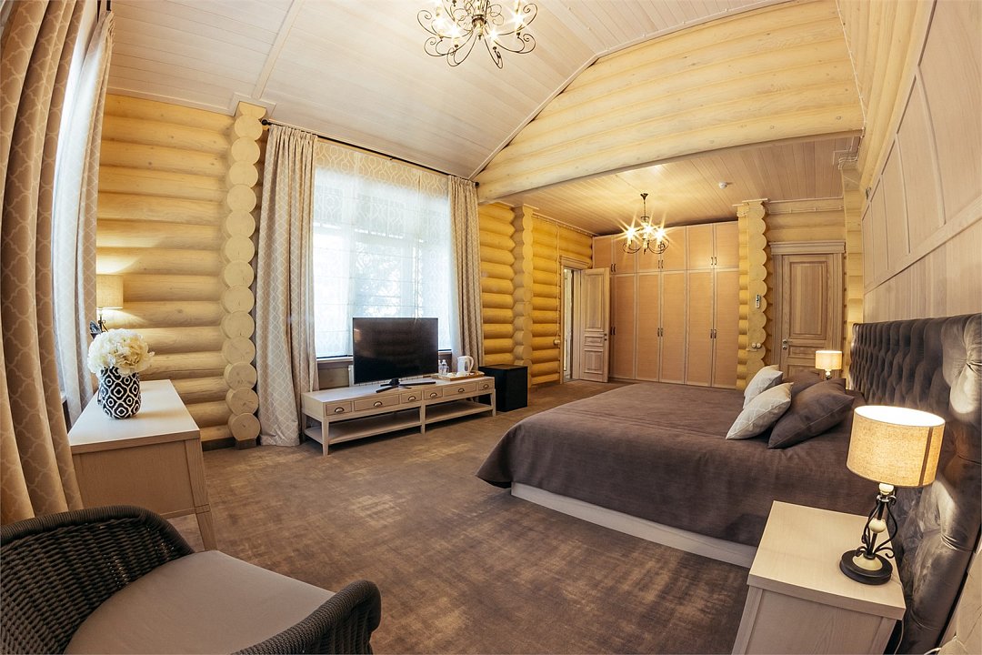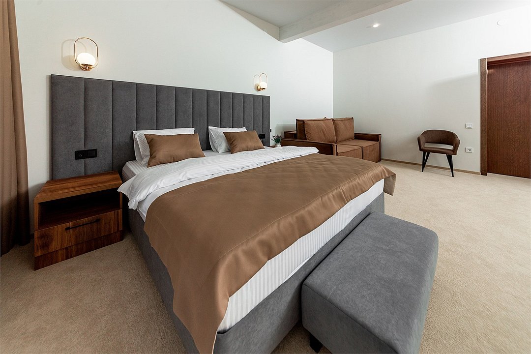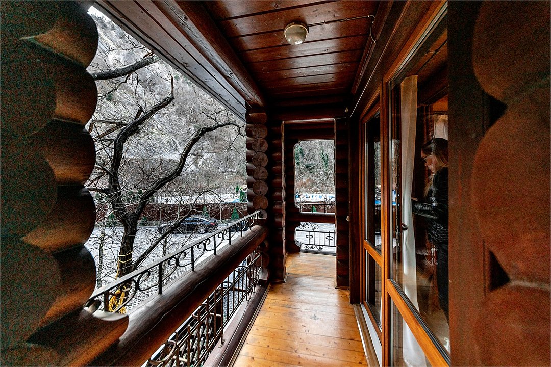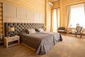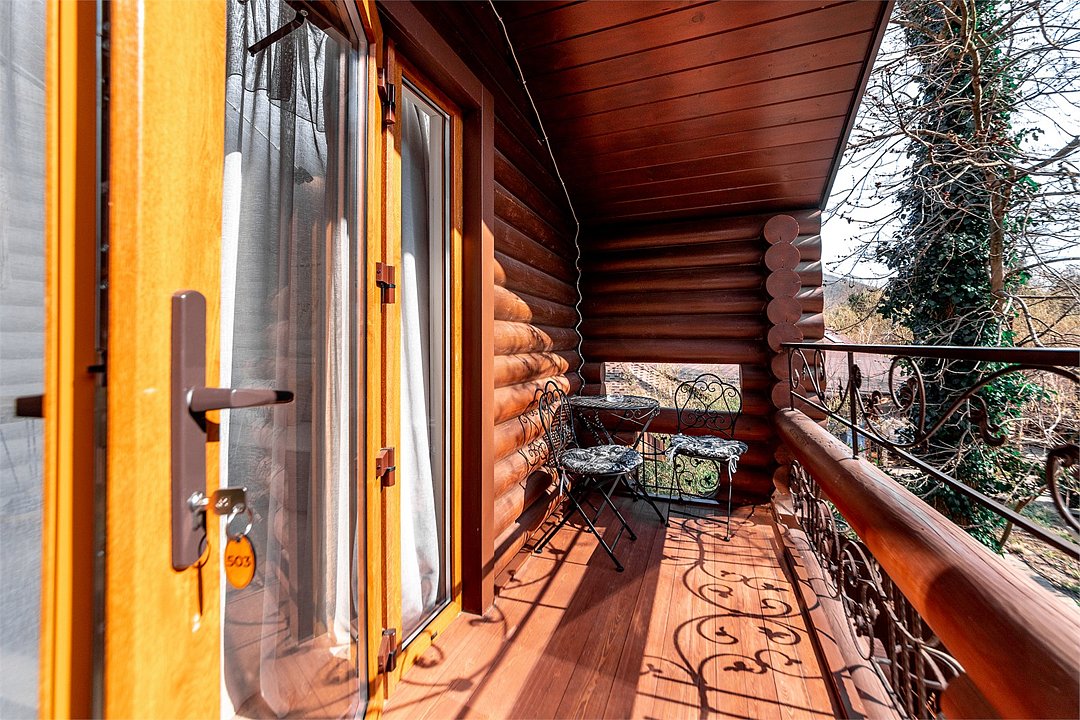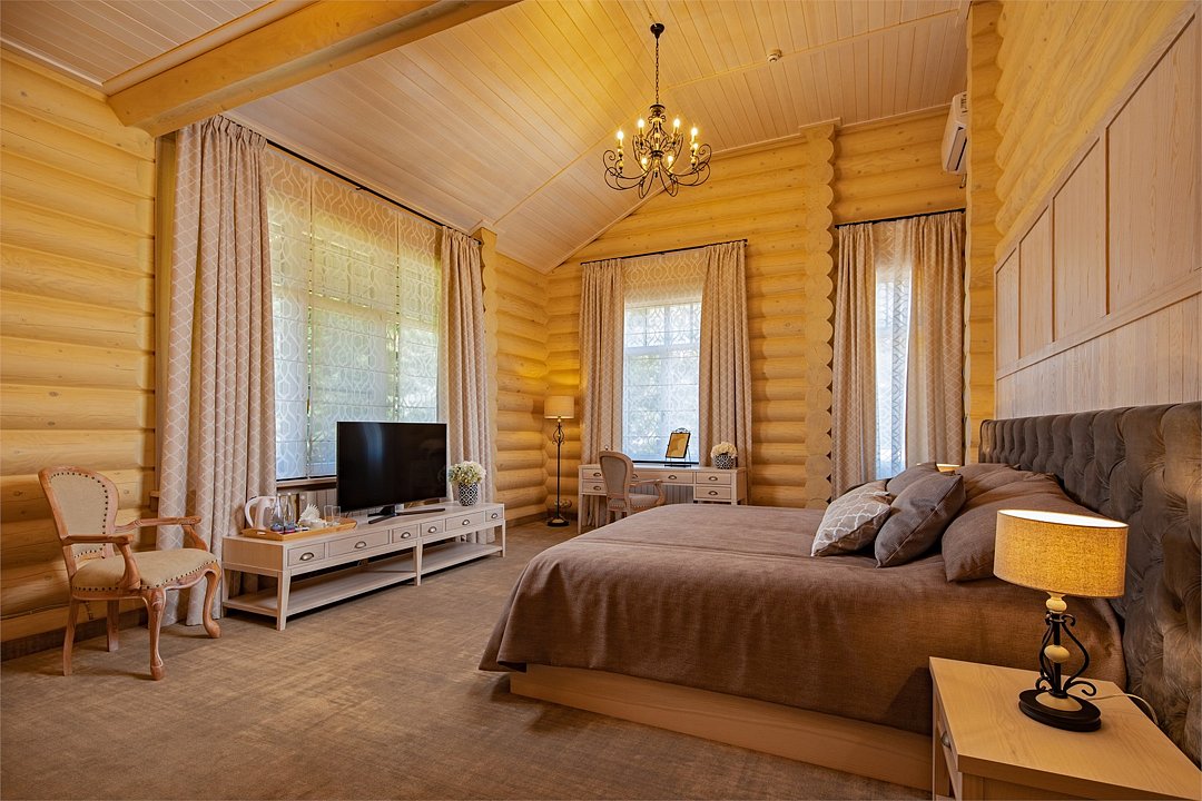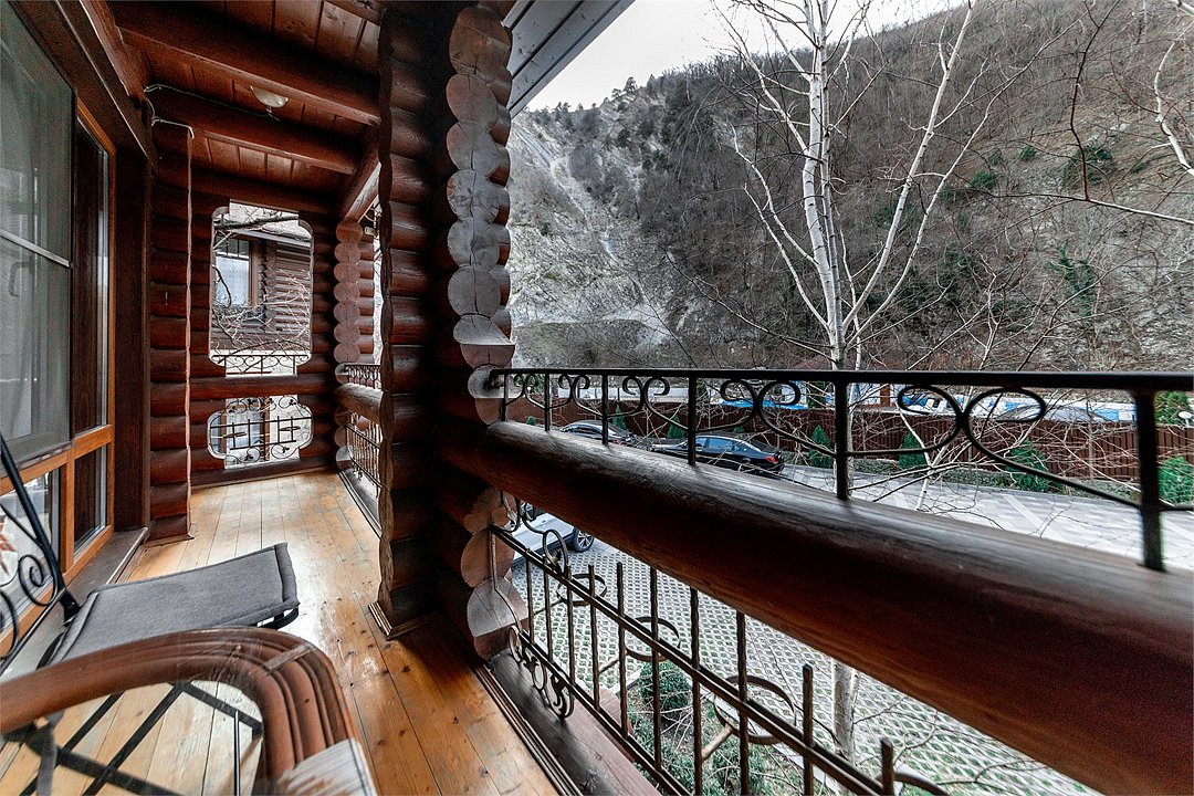 Мы рады предложить Вам удобные и уютные двухкомнатные номера категории "люкс" площадью 56 кв.м. Номера расположены на вторых этажах срубового дома и обладают индивидуальными выходами на балконы, что позволяет насладиться свежим воздухом и прекрасным видом на горы и зелень. При неизменной роскоши каждого из люксов, каждый из них наделен неподражаемым дизайном. Вы сможете выбрать для себя тот люкс, который особенно подходит вам и станет излюбленным местом для отдыха. Теплая цветовая гамма, уникальная комплектация, дизайнерская мебель создают особенную атмосферу в номерах. Стильная и просторная гостиная с мягким диваном и уютная спальня с комфортной кроватью, ванная комната и вся необходимая техника, имеющаяся в наличии , будут способствовать незабываемому отдыху.Услуги и удобства