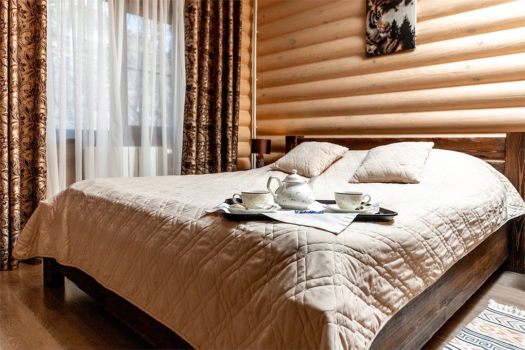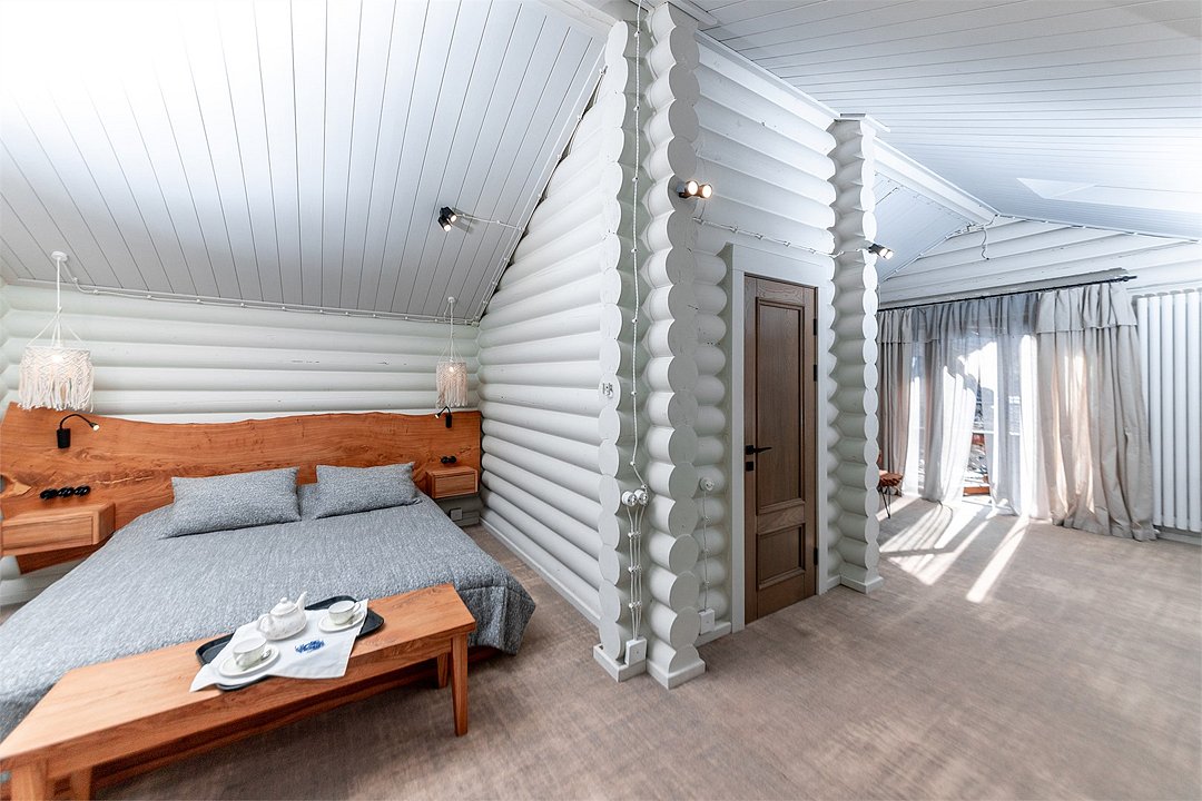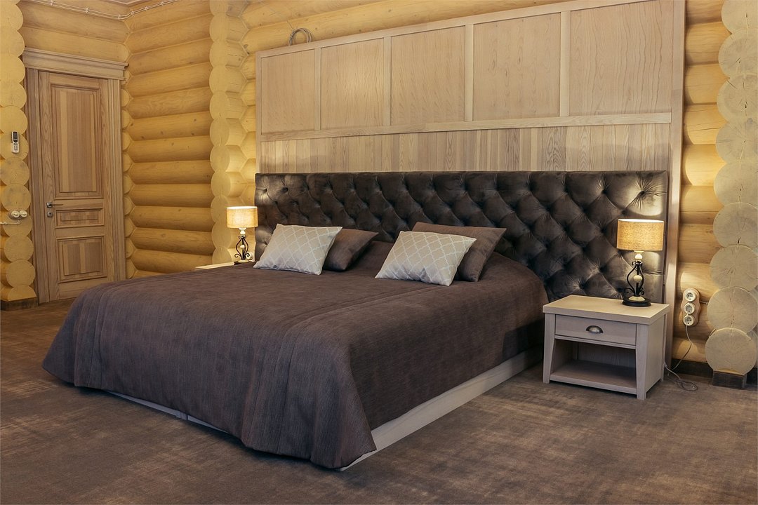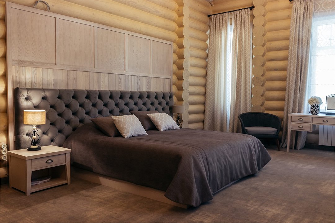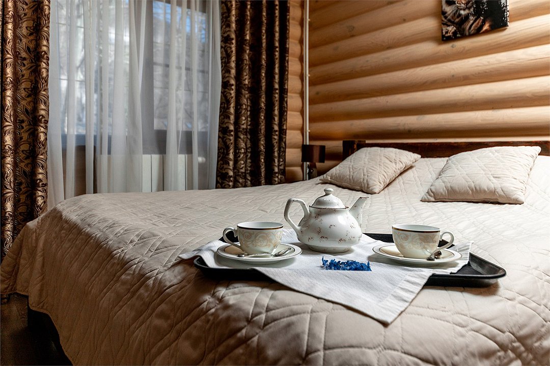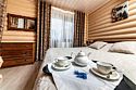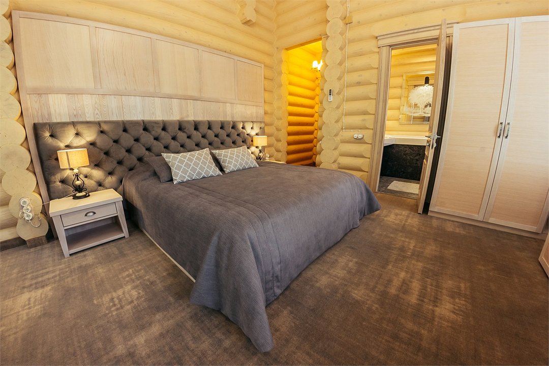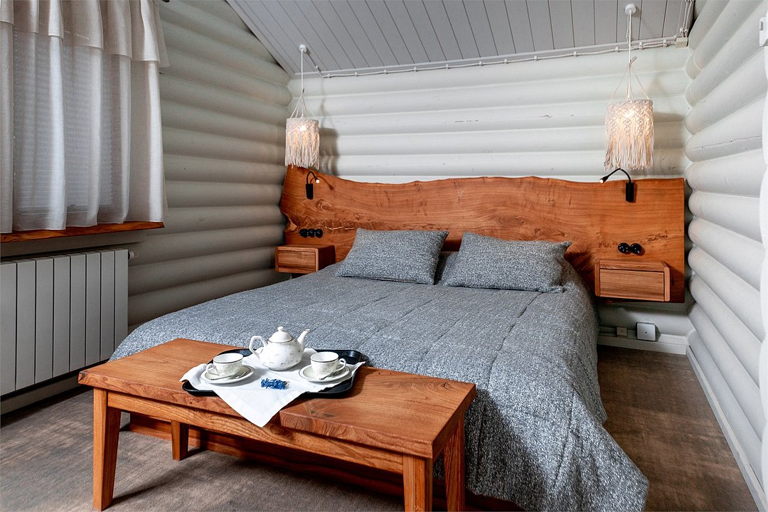 Мы рады предложить Вам удобные и уютные двухкомнатные номера категории "люкс" площадью 56 кв.м. Номера расположены на вторых этажах срубового дома и обладают индивидуальными выходами на балконы, что позволяет насладиться свежим воздухом и прекрасным видом на горы и зелень. При неизменной роскоши каждого из люксов, каждый из них наделен неподражаемым дизайном. Вы сможете выбрать для себя тот люкс, который особенно подходит вам и станет излюбленным местом для отдыха. Теплая цветовая гамма, уникальная комплектация, дизайнерская мебель создают особенную атмосферу в номерах. Стильная и просторная гостиная с мягким диваном и уютная спальня с комфортной кроватью, ванная комната и вся необходимая техника, имеющаяся в наличии , будут способствовать незабываемому отдыху.Услуги и удобства