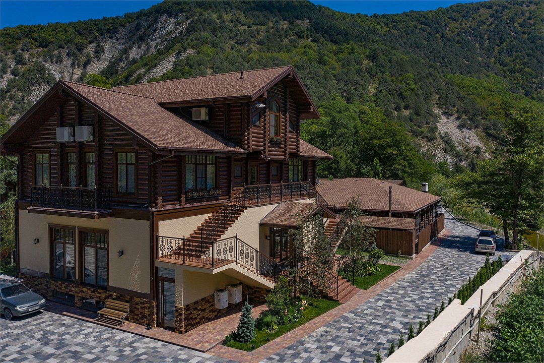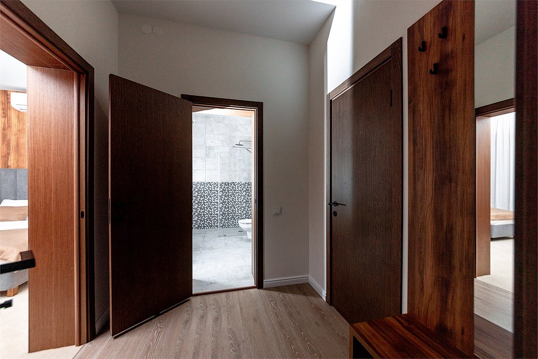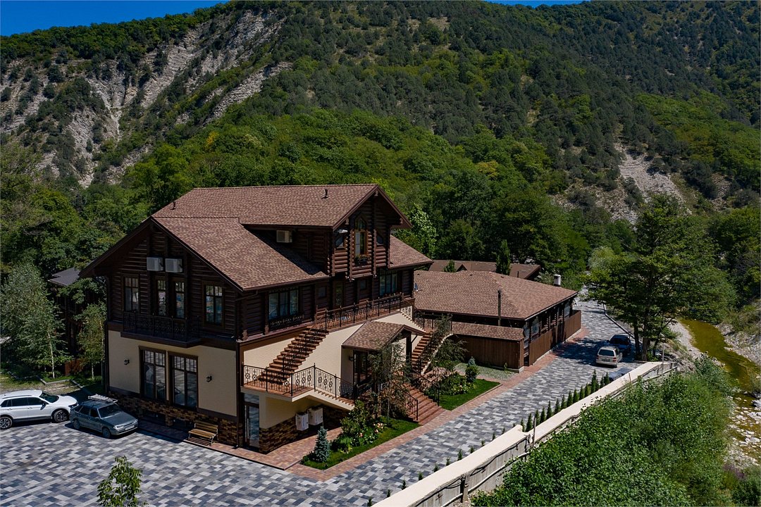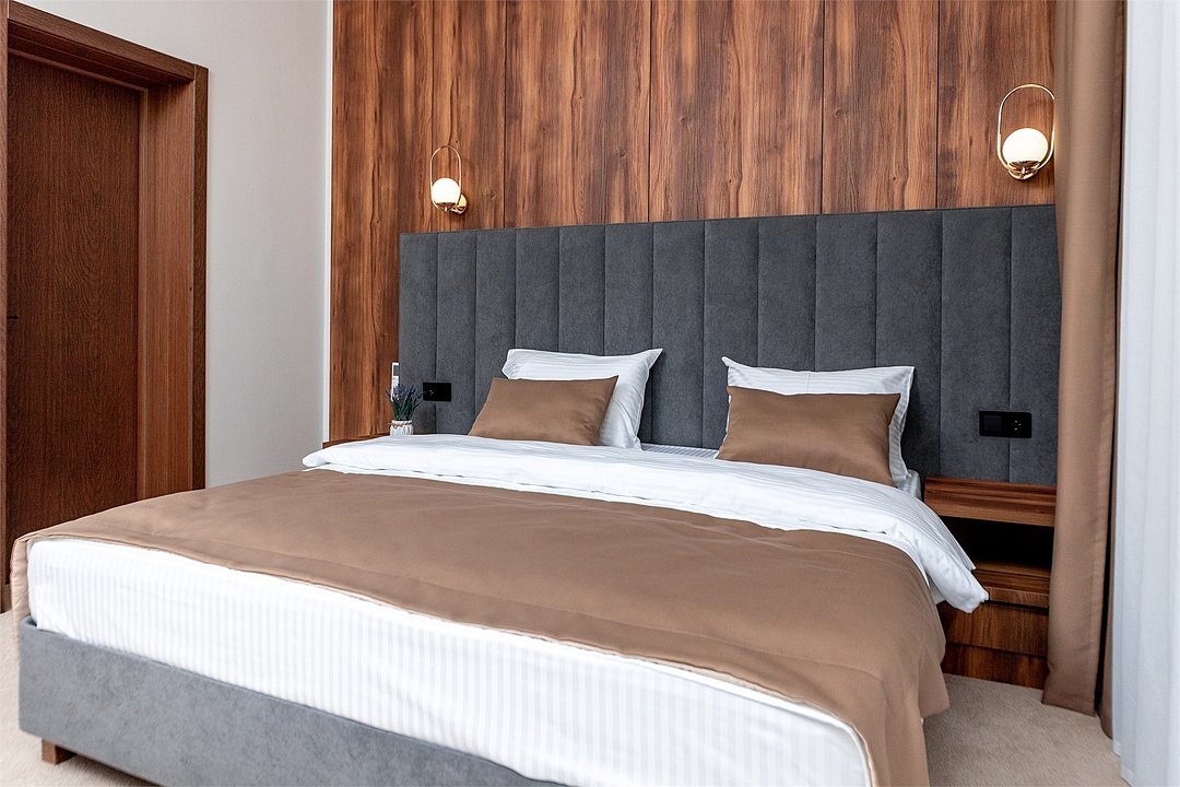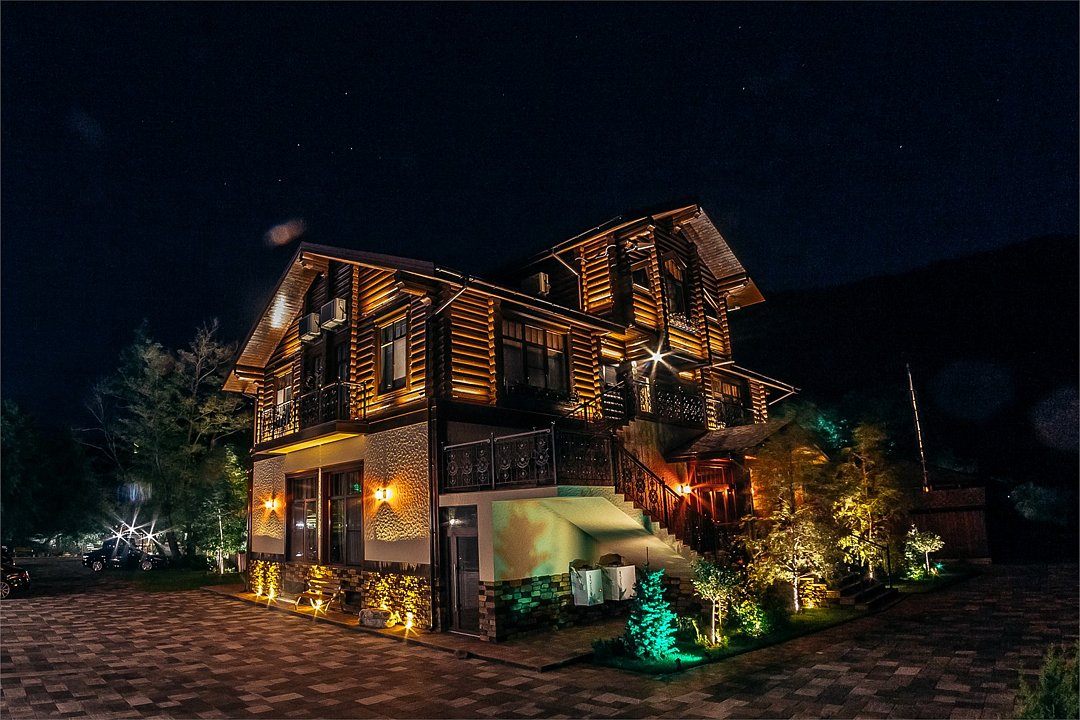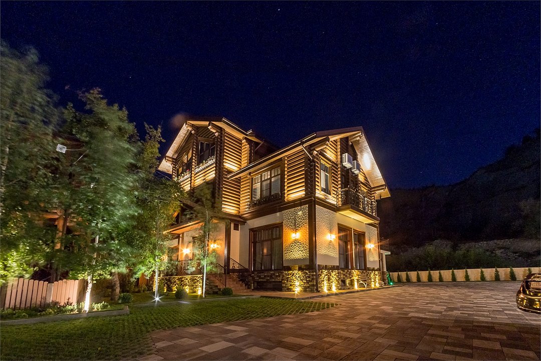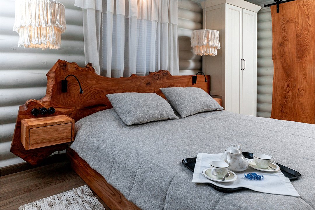 Мы рады предложить Вам удобные и уютные двухкомнатные номера категории "люкс" площадью 56 кв.м. Номера расположены на вторых этажах срубового дома и обладают индивидуальными выходами на балконы, что позволяет насладиться свежим воздухом и прекрасным видом на горы и зелень. При неизменной роскоши каждого из люксов, каждый из них наделен неподражаемым дизайном. Вы сможете выбрать для себя тот люкс, который особенно подходит вам и станет излюбленным местом для отдыха. Теплая цветовая гамма, уникальная комплектация, дизайнерская мебель создают особенную атмосферу в номерах. Стильная и просторная гостиная с мягким диваном и уютная спальня с комфортной кроватью, ванная комната и вся необходимая техника, имеющаяся в наличии , будут способствовать незабываемому отдыху.Услуги и удобства