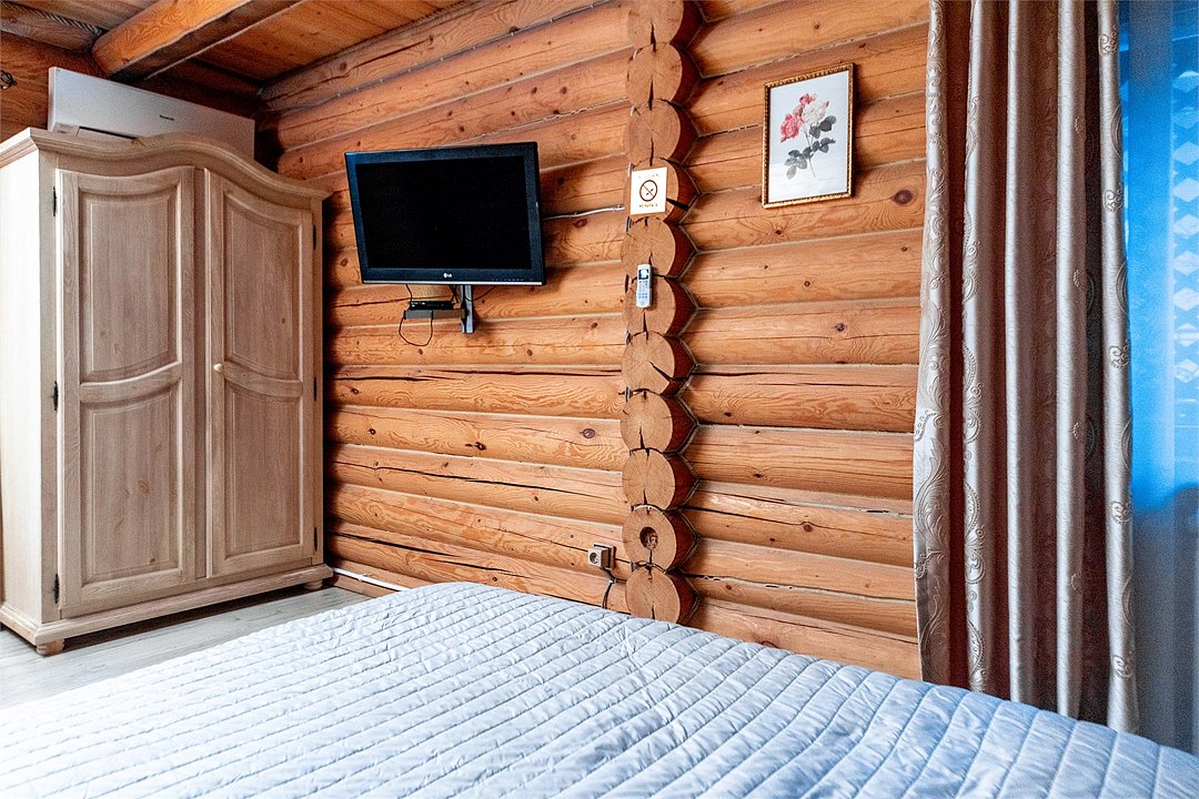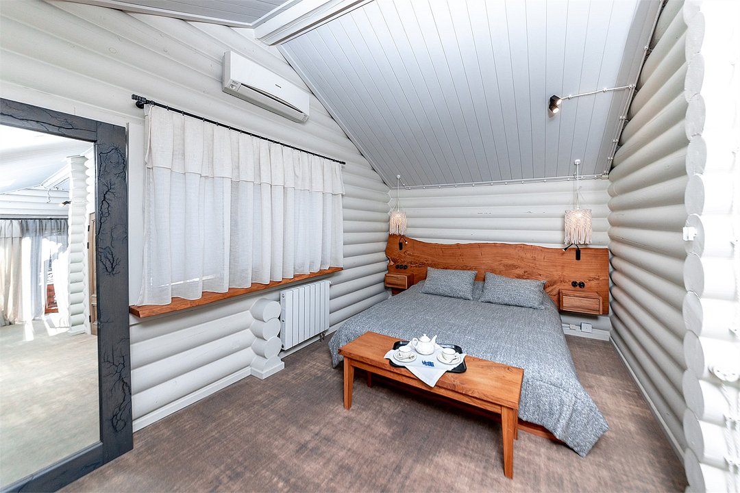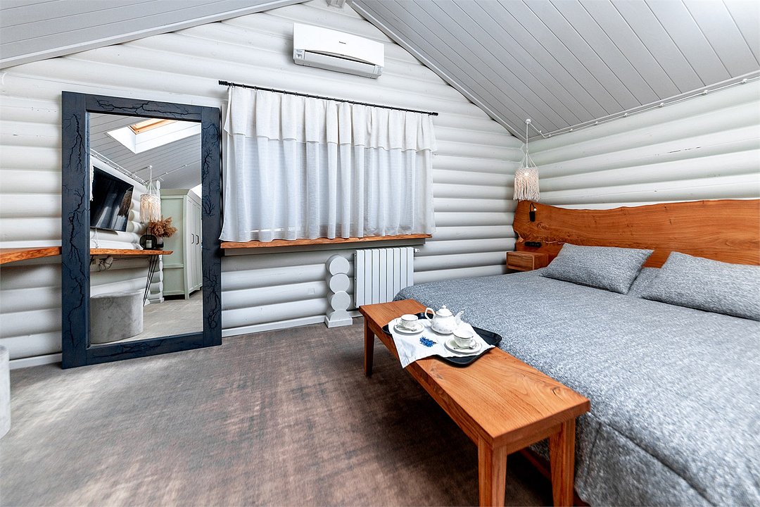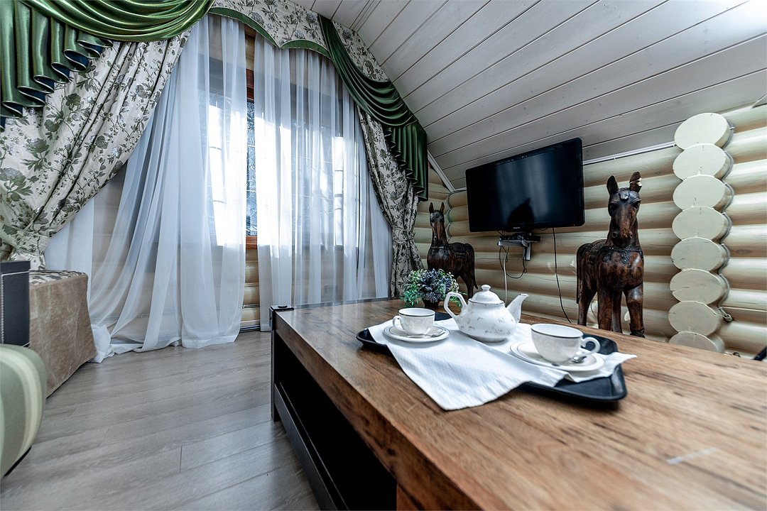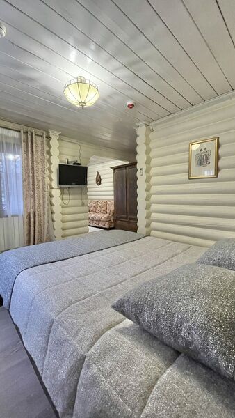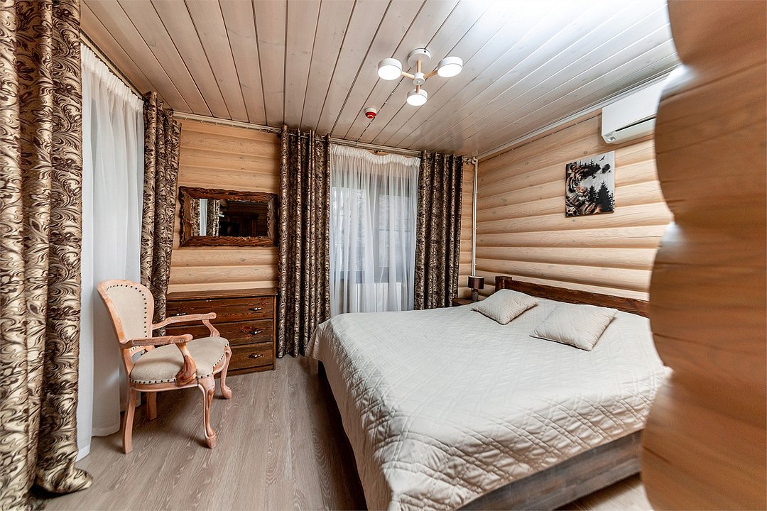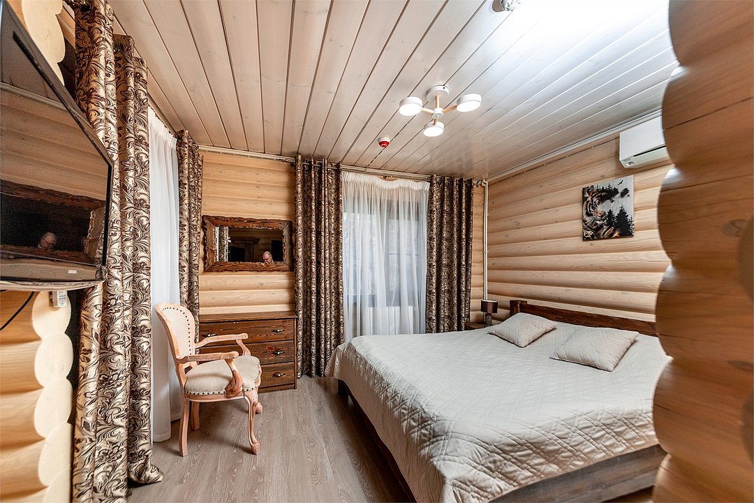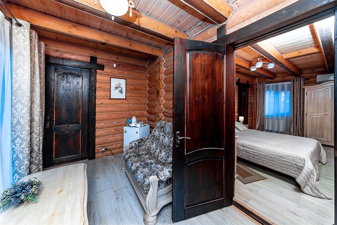 Элегантный просторный номер «Комфорт плюс» расположен в корпусе коттеджа-сруба «№1 на втором этаже. Окна выходят в спокойный симпатичный дворик на территории загородного клуба. Это отличный вариант для пары или семьи с детьми. Вам обеспечены тишина, комфорт, возможность расслабиться и насладиться отдыхом в экологически чистой зоне . С балкона открывается завораживающий вид на горы и зелень. Номер "Комфорт плюс" на 2 этаже условно разделен на два пространства: спальню и жилую комнату. В жилой комнате имеется раскладной двухместный диван. В этом номере можно разместиться 4 чел. В ванной – просторная душевая кабина. Также для вас в «Комфорте плюс»: кондиционер; холодильник; Wi-Fi; 2 телевизора; чайник; посуда для чаепития Тщательно следим за чистотой номера: ежедневно меняем полотенца и постельное белье. Для гостей подготовлены личные махровые халаты и тапочки. Год реконструкции -2023 гУслуги и удобства