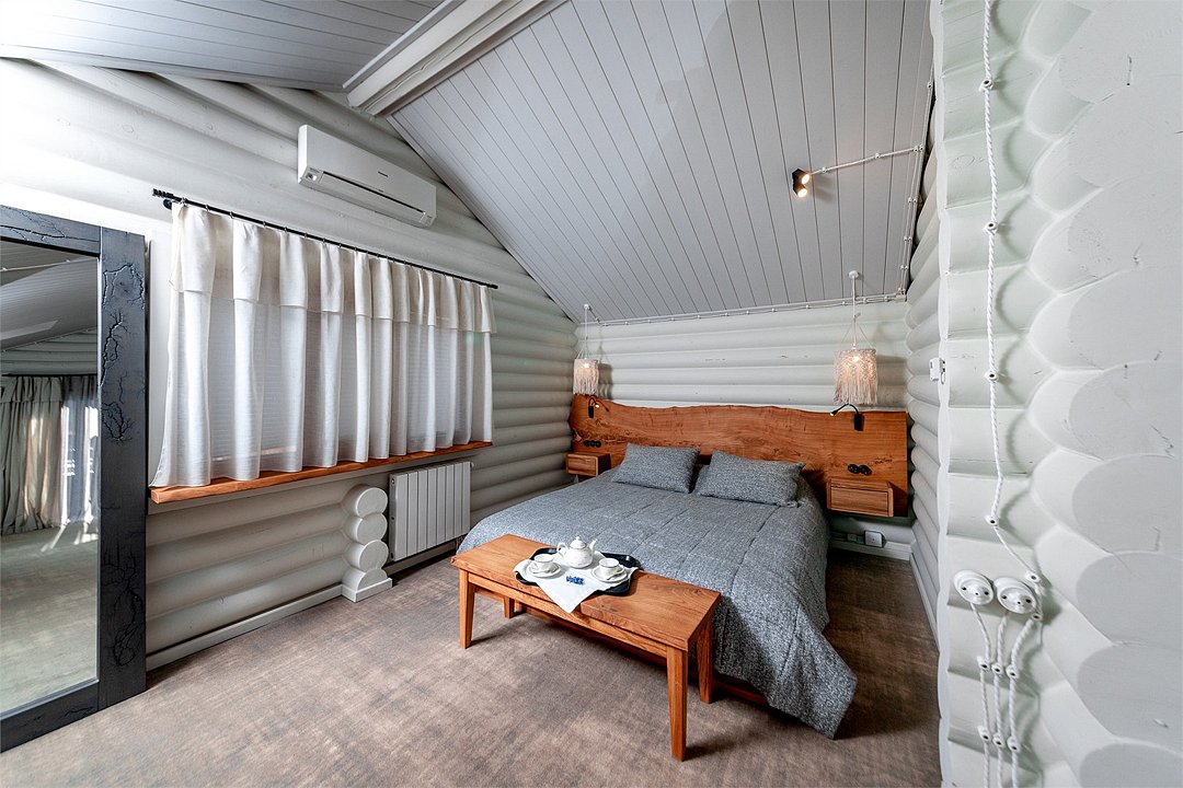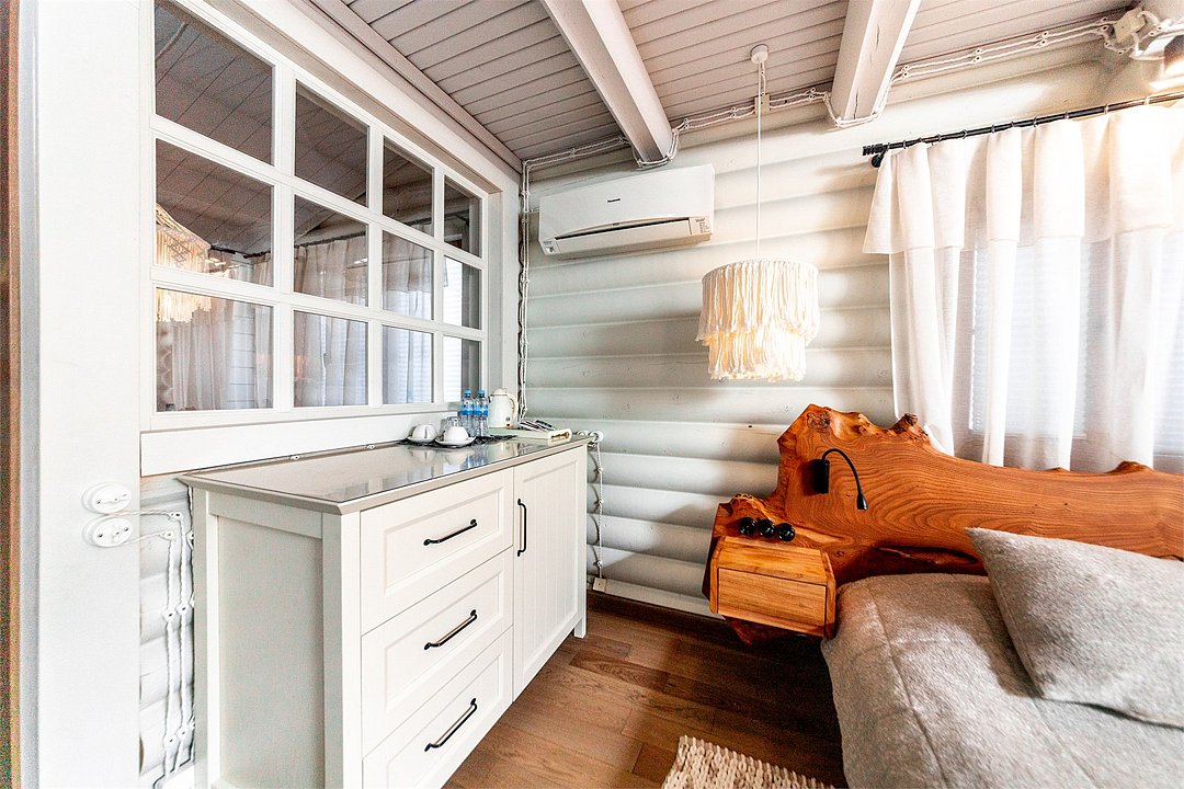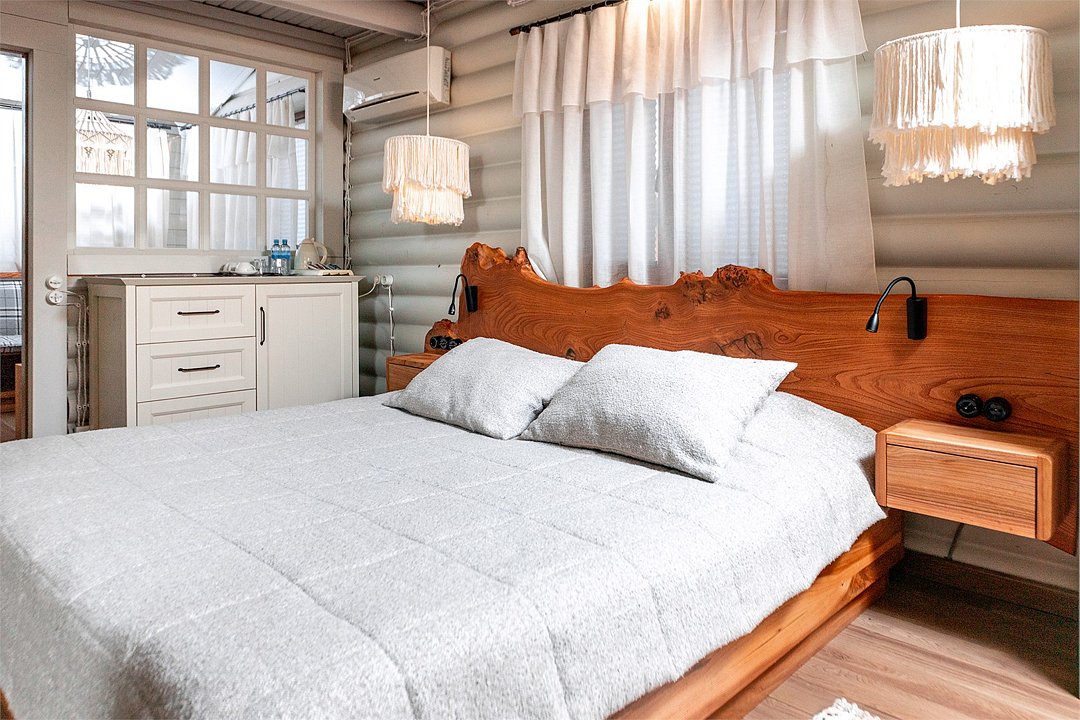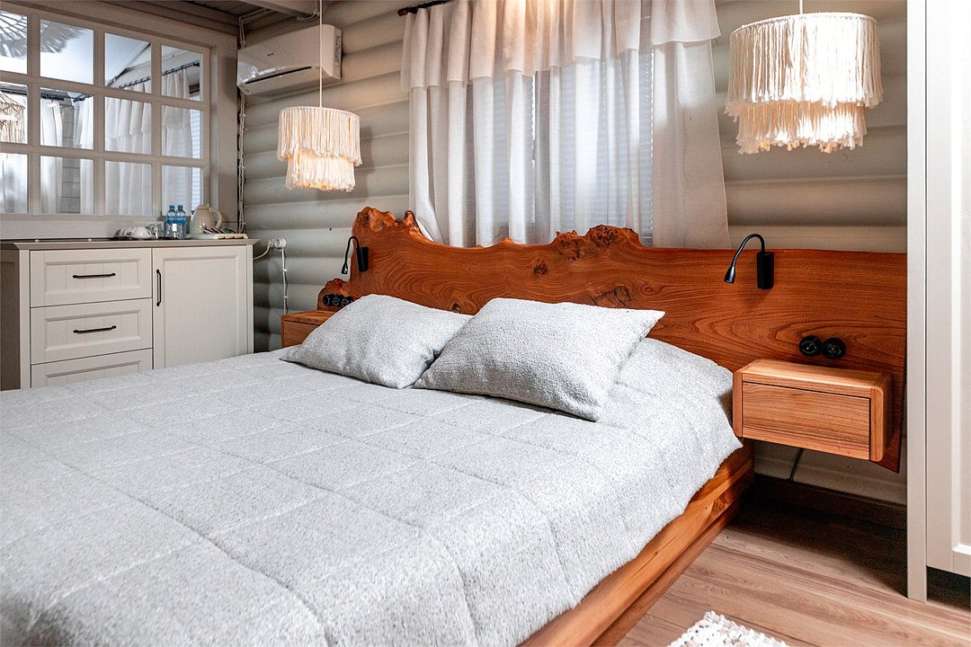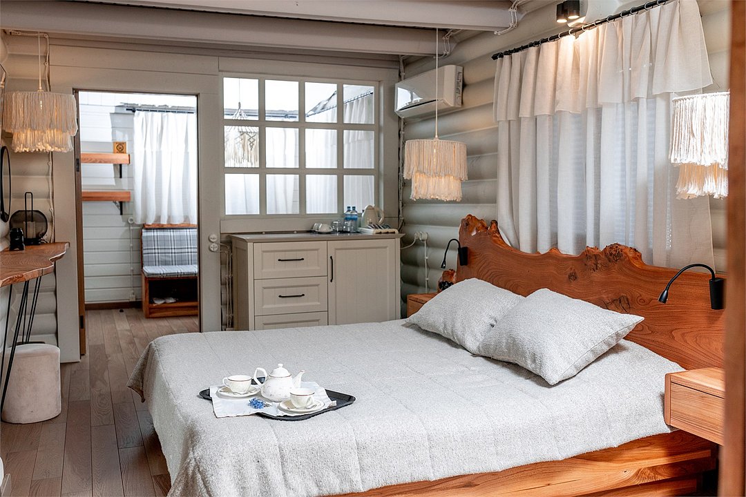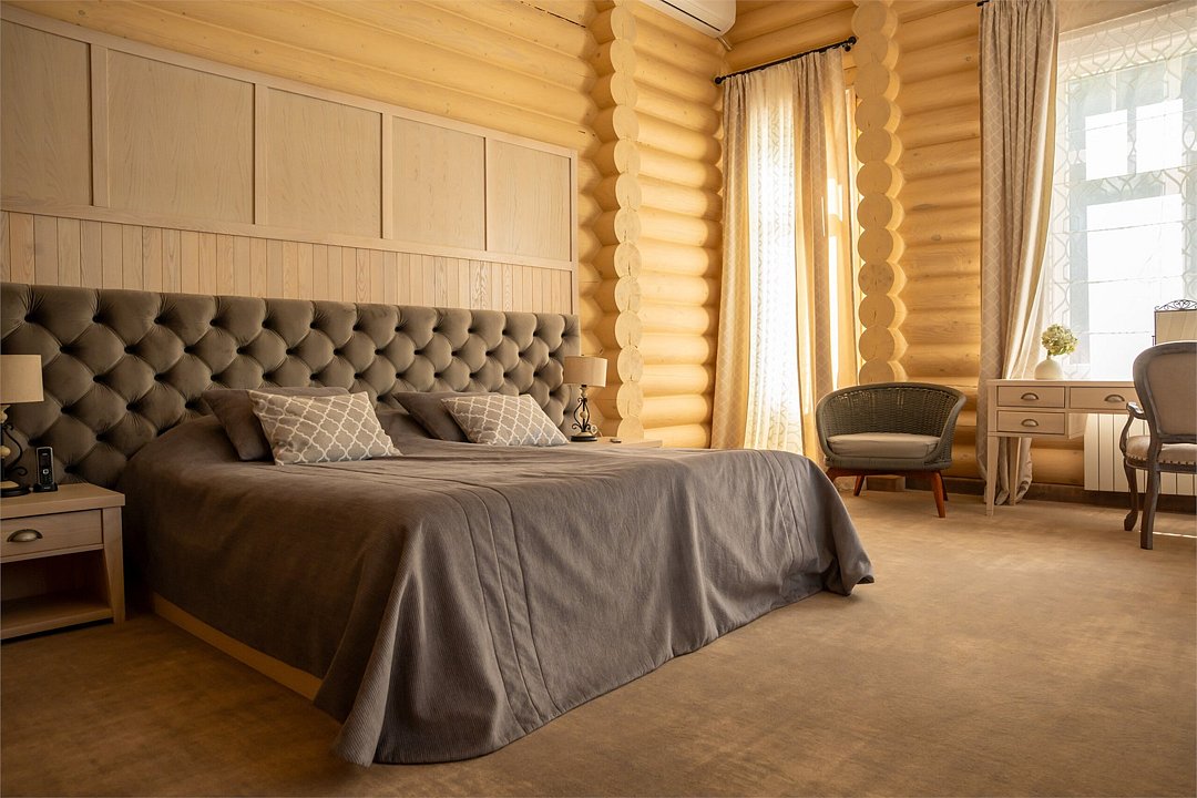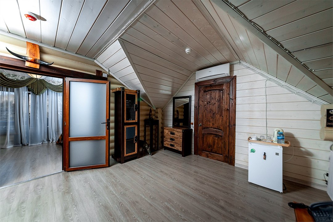 Элегантный просторный номер «Комфорт плюс» расположен в корпусе коттеджа-сруба «№1 на втором этаже. Окна выходят в спокойный симпатичный дворик на территории загородного клуба. Это отличный вариант для пары или семьи с детьми. Вам обеспечены тишина, комфорт, возможность расслабиться и насладиться отдыхом в экологически чистой зоне . С балкона открывается завораживающий вид на горы и зелень. Номер "Комфорт плюс" на 2 этаже условно разделен на два пространства: спальню и жилую комнату. В жилой комнате имеется раскладной двухместный диван. В этом номере можно разместиться 4 чел. В ванной – просторная душевая кабина. Также для вас в «Комфорте плюс»: кондиционер; холодильник; Wi-Fi; 2 телевизора; чайник; посуда для чаепития Тщательно следим за чистотой номера: ежедневно меняем полотенца и постельное белье. Для гостей подготовлены личные махровые халаты и тапочки. Год реконструкции -2023 гУслуги и удобства