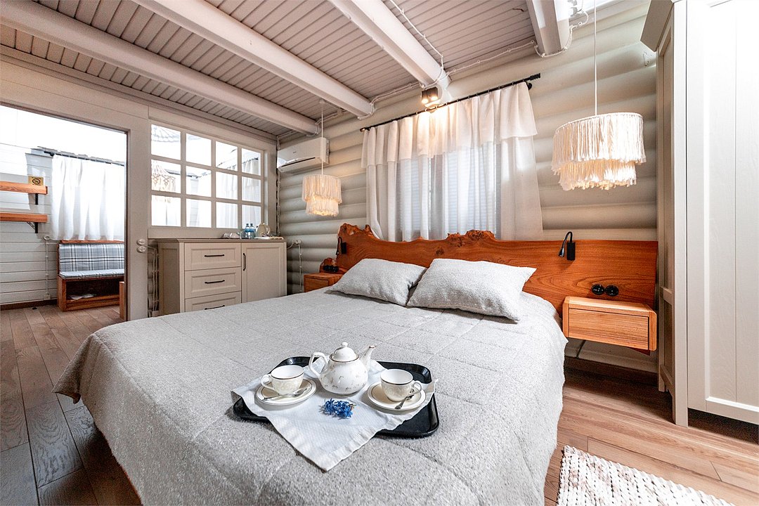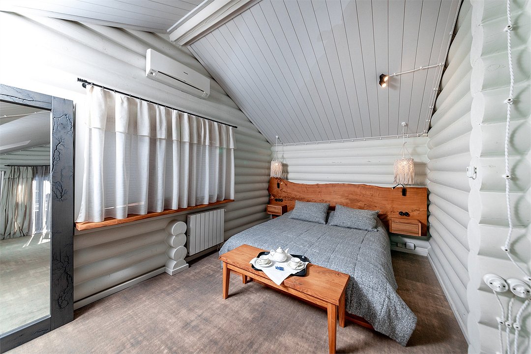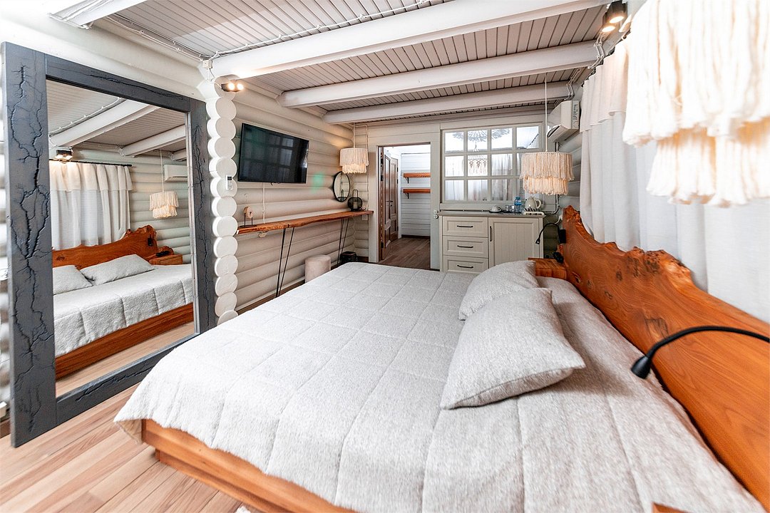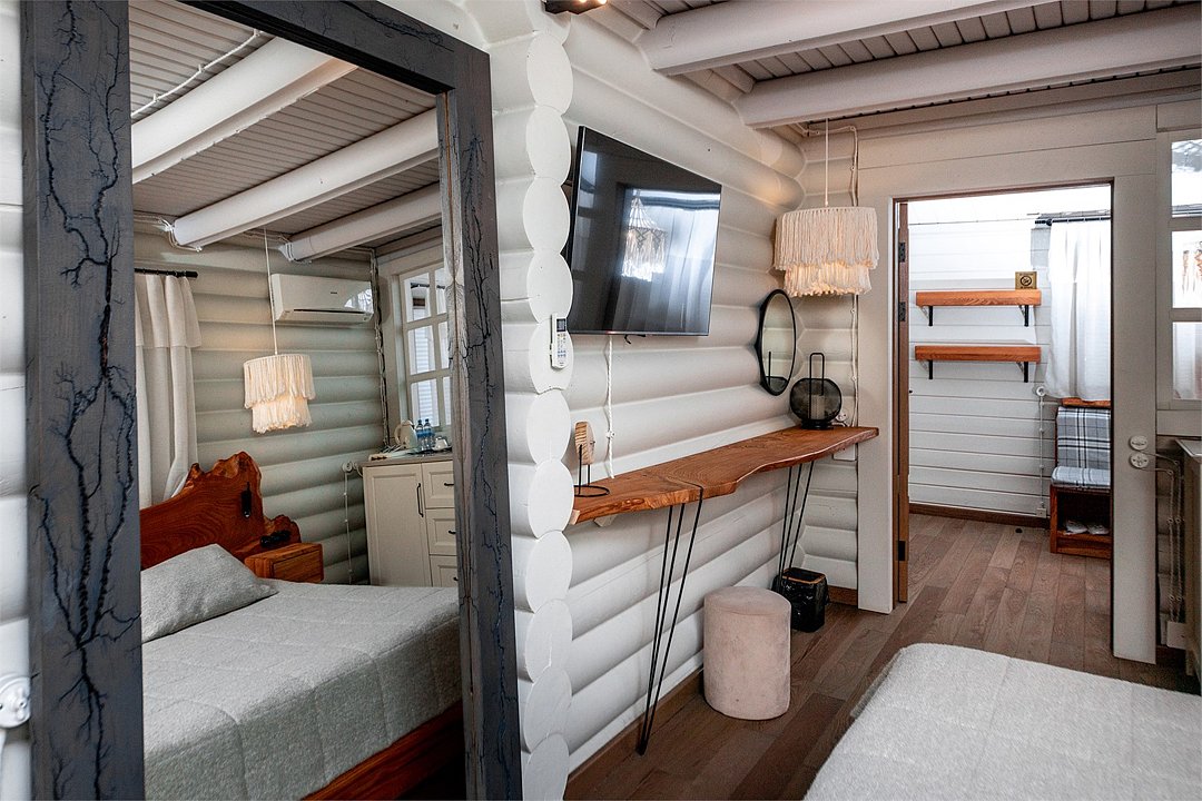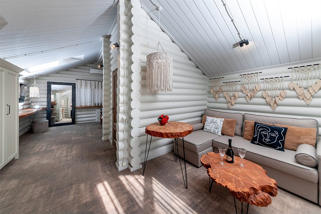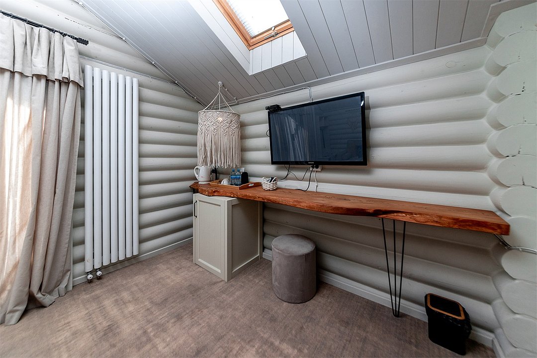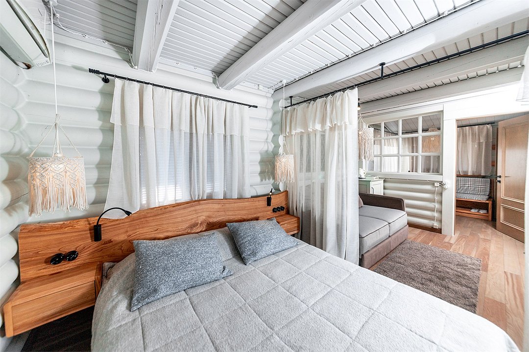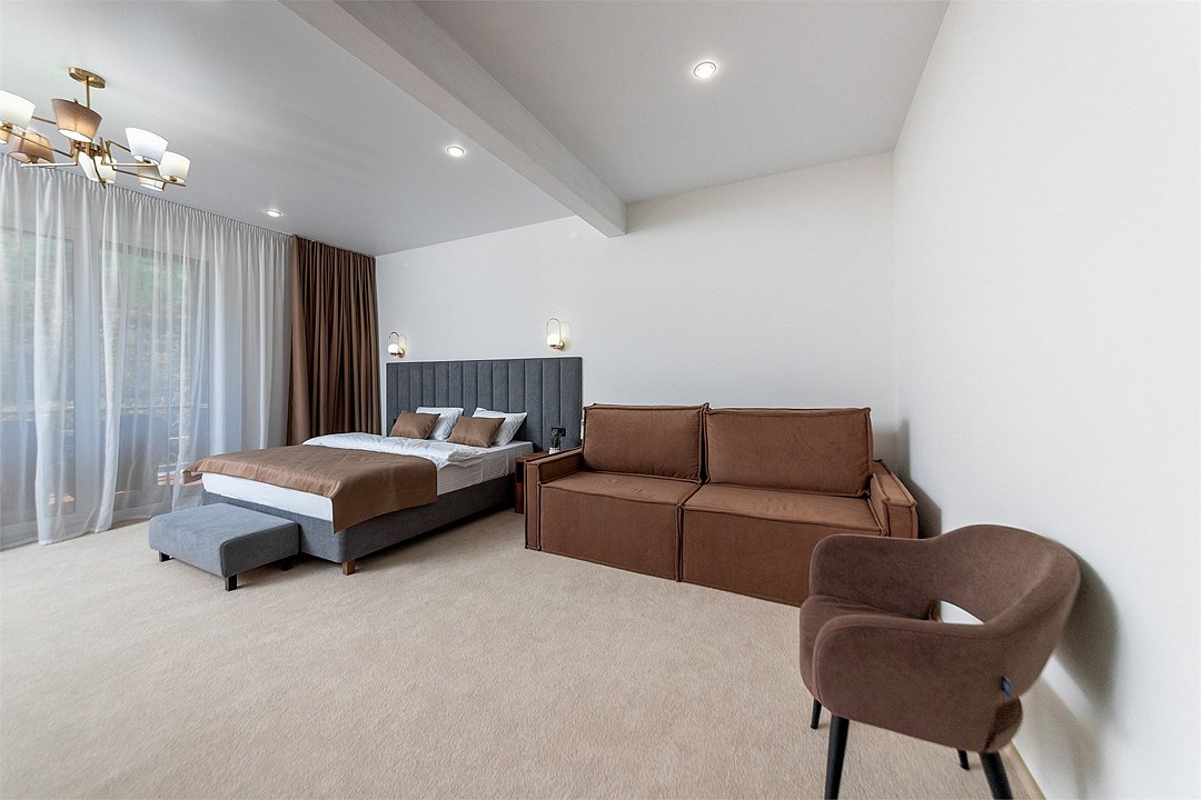 Элегантный просторный номер «Комфорт плюс» расположен в корпусе коттеджа-сруба «№1 на втором этаже. Окна выходят в спокойный симпатичный дворик на территории загородного клуба. Это отличный вариант для пары или семьи с детьми. Вам обеспечены тишина, комфорт, возможность расслабиться и насладиться отдыхом в экологически чистой зоне . С балкона открывается завораживающий вид на горы и зелень. Номер "Комфорт плюс" на 2 этаже условно разделен на два пространства: спальню и жилую комнату. В жилой комнате имеется раскладной двухместный диван. В этом номере можно разместиться 4 чел. В ванной – просторная душевая кабина. Также для вас в «Комфорте плюс»: кондиционер; холодильник; Wi-Fi; 2 телевизора; чайник; посуда для чаепития Тщательно следим за чистотой номера: ежедневно меняем полотенца и постельное белье. Для гостей подготовлены личные махровые халаты и тапочки. Год реконструкции -2023 гУслуги и удобства