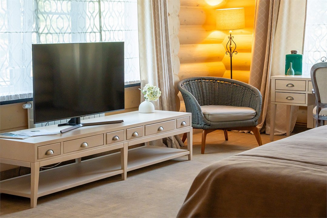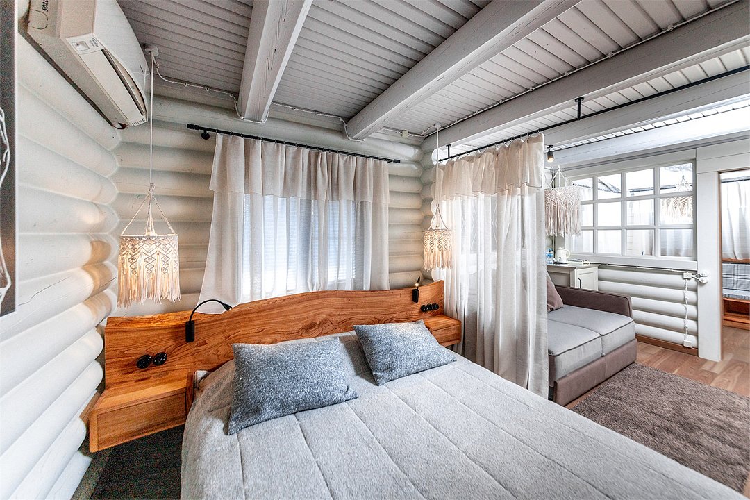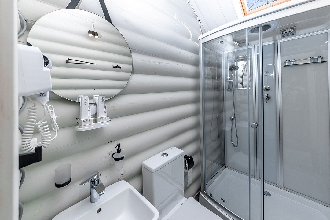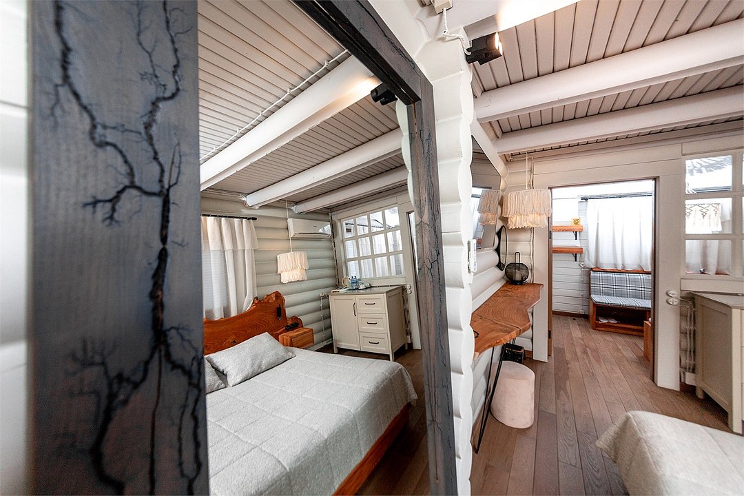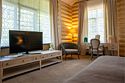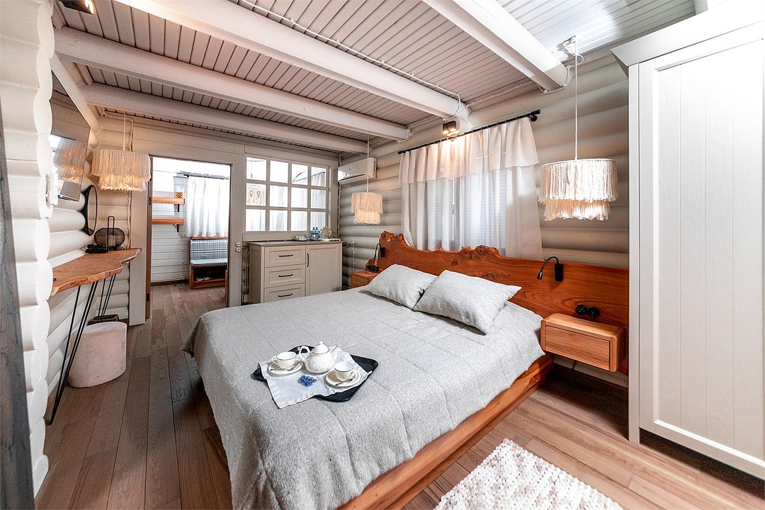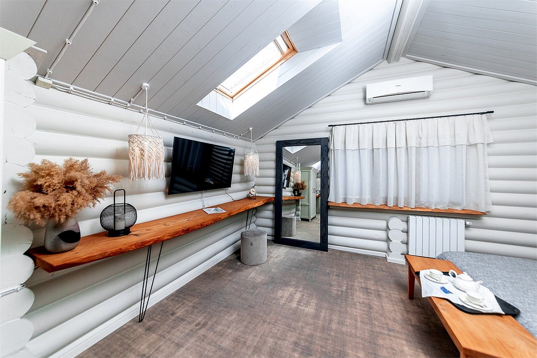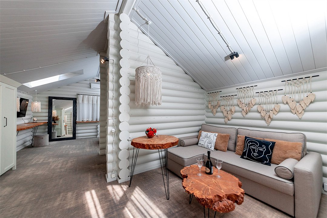 Элегантный просторный номер «Комфорт плюс» расположен в корпусе коттеджа-сруба «№1 на втором этаже. Окна выходят в спокойный симпатичный дворик на территории загородного клуба. Это отличный вариант для пары или семьи с детьми. Вам обеспечены тишина, комфорт, возможность расслабиться и насладиться отдыхом в экологически чистой зоне . С балкона открывается завораживающий вид на горы и зелень. Номер "Комфорт плюс" на 2 этаже условно разделен на два пространства: спальню и жилую комнату. В жилой комнате имеется раскладной двухместный диван. В этом номере можно разместиться 4 чел. В ванной – просторная душевая кабина. Также для вас в «Комфорте плюс»: кондиционер; холодильник; Wi-Fi; 2 телевизора; чайник; посуда для чаепития Тщательно следим за чистотой номера: ежедневно меняем полотенца и постельное белье. Для гостей подготовлены личные махровые халаты и тапочки. Год реконструкции -2023 гУслуги и удобства