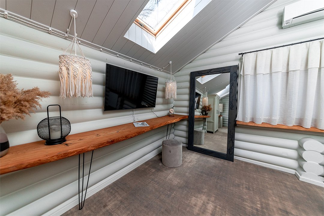 Wi-Fi, кондиционер, светильник, фен, утюг, санузел, халаты, банные полотенца, тапочки, терраса, двуспальная кровать, гладильная доска, стулья, шкаф для одежды, зеркало, сейф, унитаз, ковровое покрытие, отопление, душ, кресло, стул, стол, тумба, туалетные средства, туалет, панорамные окна, мини-холодильник, вид на горы, телевизор со Smart TV, вид на лес, гигиенический душ, кресло-кровать, чайная станция, уборка номера, вешалки-плечики, шапочка для душа, мыло, зеркало в полный рост, без питомцевВ номере