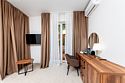 Джуниор сьют –это просторный номер повышенной категории в современном стиле со своим балконом, расположенный на 2 этаже нового дома. Площадь номера 27 м2 , поэтому он идеально подходит для комфортного размещения 2 взрослых . К услугам проживающих мини холодильник, телевизор, сплит система, сейф, шкаф, прикроватная тумбочка, стул, туалетный столик, сушилка для белья, плечики для одежды, утюг и гладильная доска.Услуги и удобства
