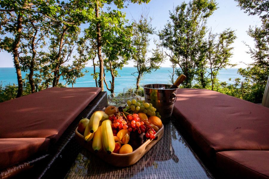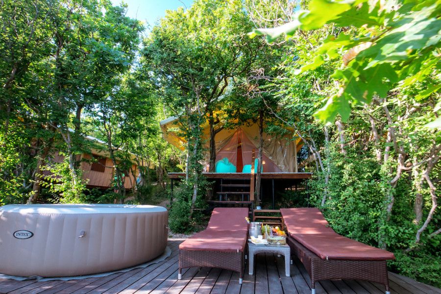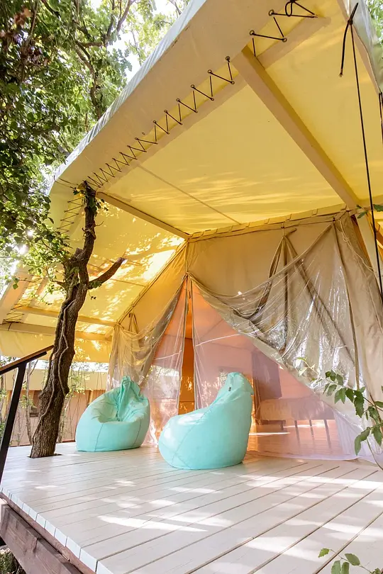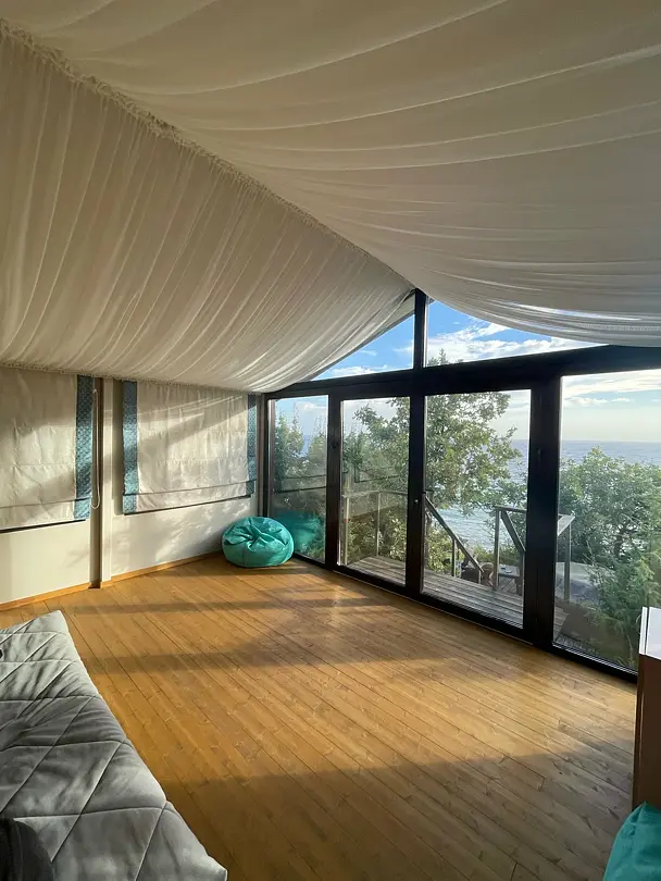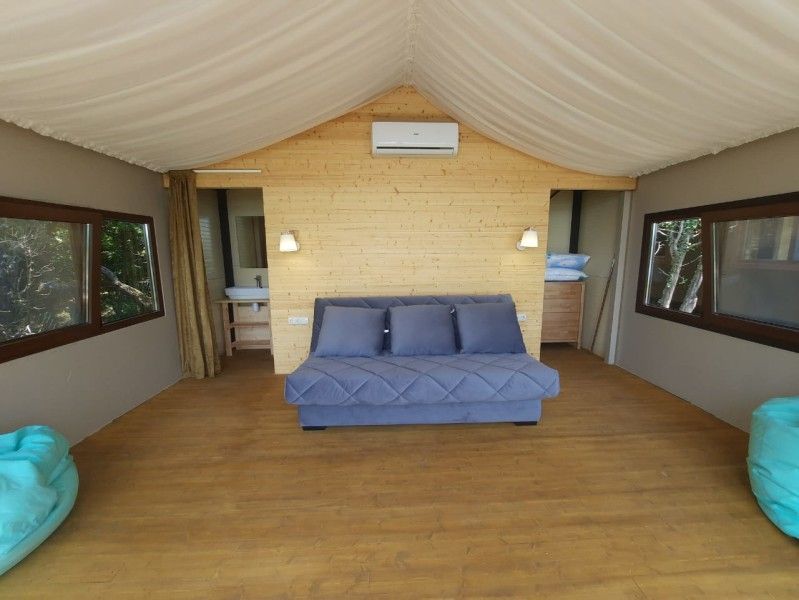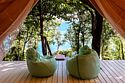 Это необыкновенная экозона, от которой невозможно оторвать восхищенный взгляд и душу. Каждый шатер оснащен собственной террасой с бассейном-джакузи и шезлонгами, откуда открывается великолепный вид на лазурное море и Прохоровский пляж.