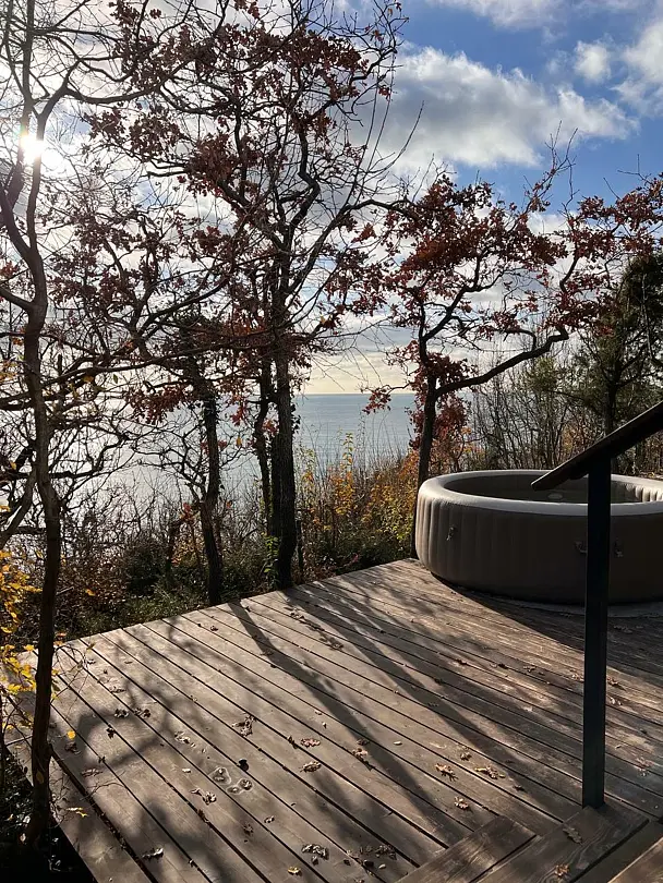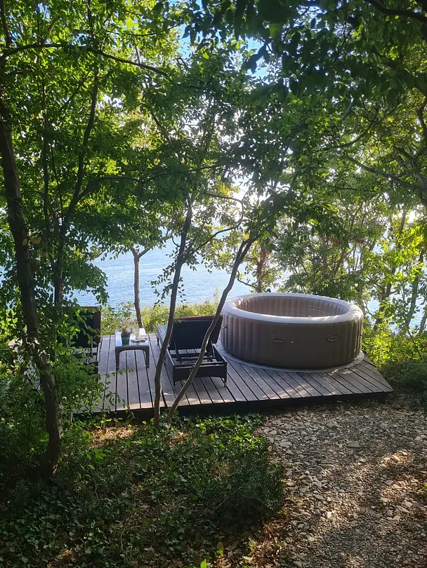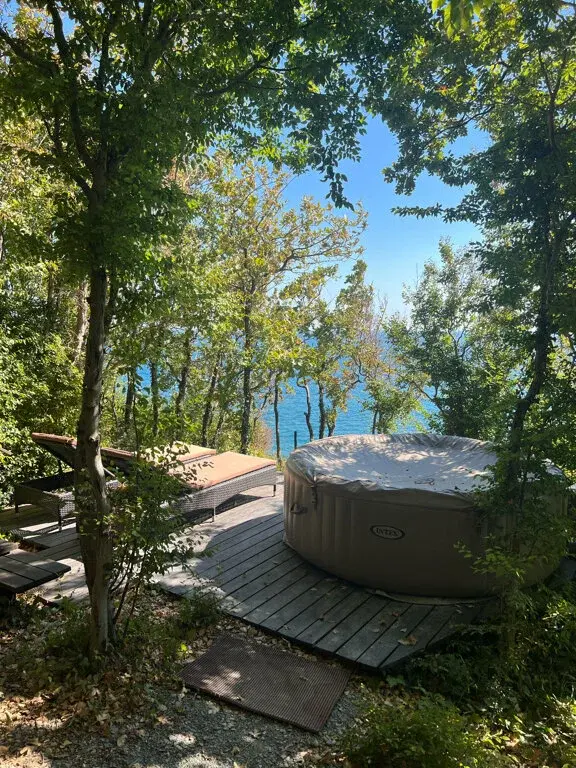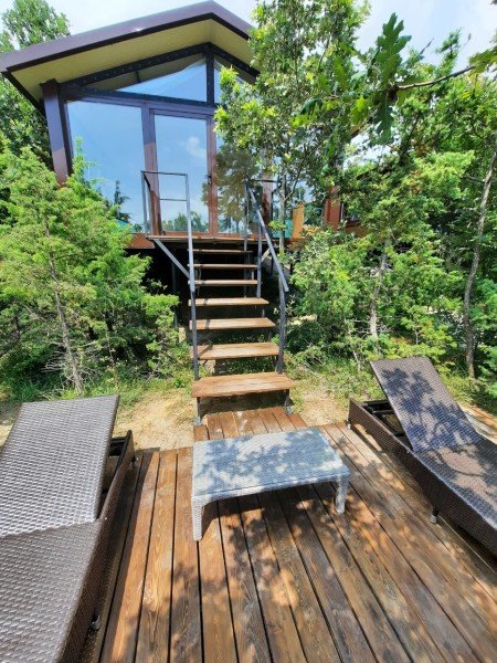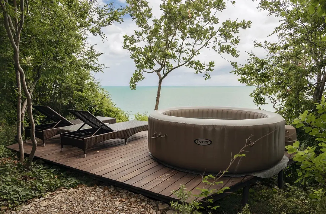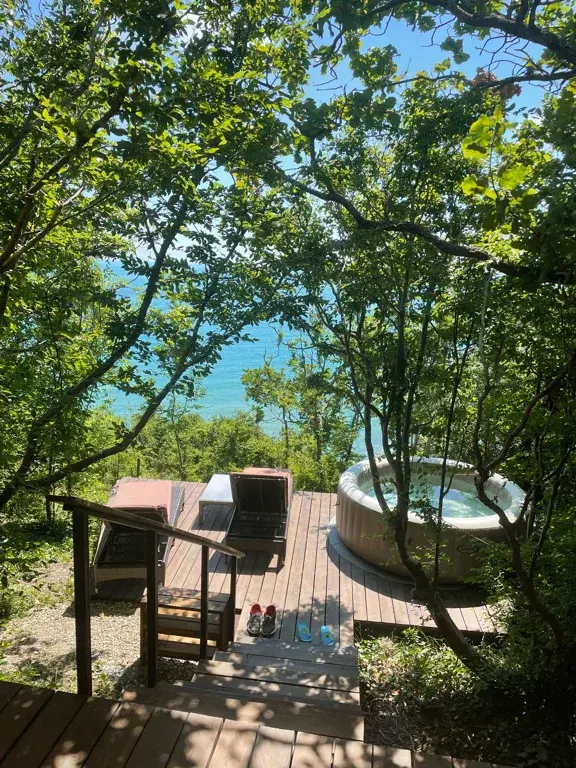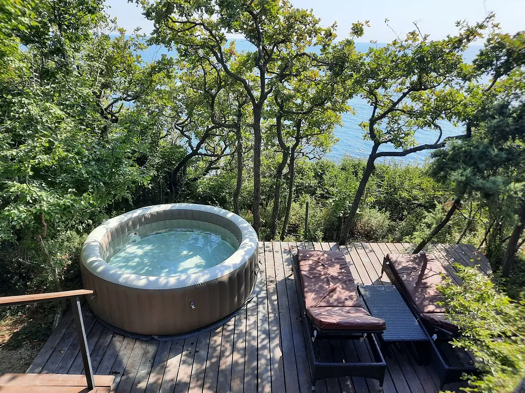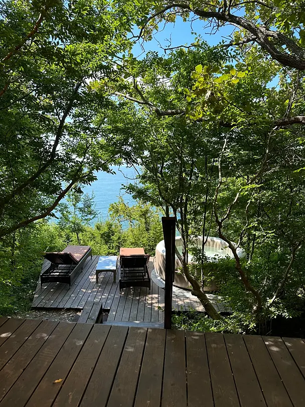 Каждый домик, расположенный на первой линии, оснащен террасой с джакузи и шезлонгами, что делает его идеальным местом для отдыха и релаксации. Гости могут наслаждаться расслабляющими водными процедурами, любуясь захватывающим видом на Черное море.
