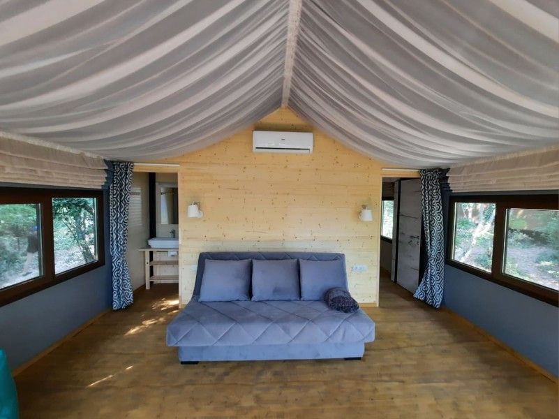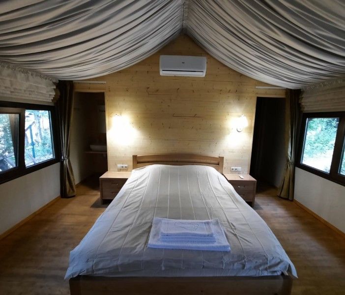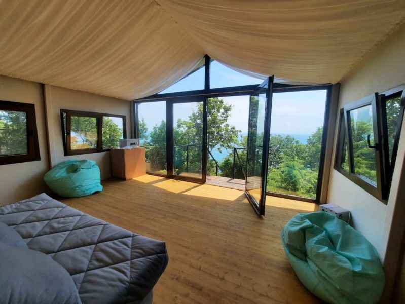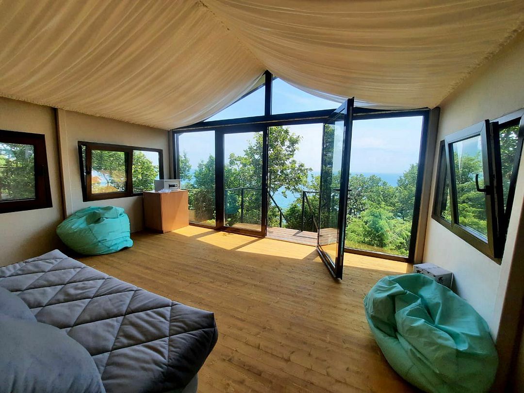 На территории глэмпинга расположена смотровая площадка, с которой открываются захватывающие виды на окружающую природу — идеальное место для романтического вечера или фотосессии. Кроме того, гости могут легко исследовать окрестности, включая такие достопримечательности, как Тебиусские водопады и древние дольмены, погружаясь в таинственную атмосферу истории и культуры региона.