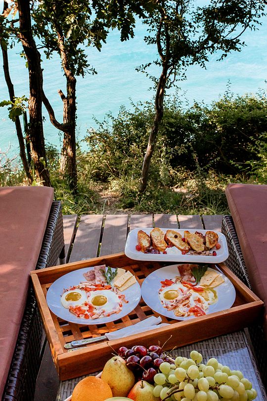 Уютные домики находятся на берегу моря и окружены тенистыми деревьями, что позволит вам насладиться прохладой и уединением даже в самую знойную жару лета. Они созданы для того, чтобы вы почувствовали уют и комфорт, вне зависимости от того, приезжаете вы вдвоем или с семьей.