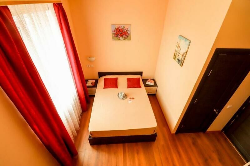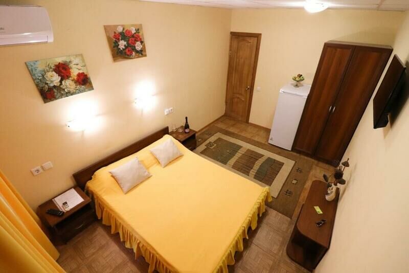 Двухэтажный корпус гостевого дома разместился на закрытой благоустроенной территории в 700 метрах от побережья. Жилой фонд включает в себя стандартные комфортабельные номера, рассчитанные на разное число гостей. В каждом номере есть индивидуальный санузел, телевизор, холодильник, установлена сплит-система, в некоторых имеется собственная кухня с электроплиткой.