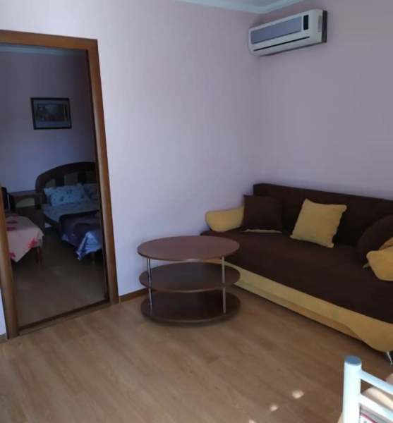 Стандарт 4-х местный двухкомнатный с кухней Двуспальная кровать, диван-кровать, односпальная кровать, прикроватная тумбочка, холодильник, телевизор, кондиционер, стол, стулья, шкаф