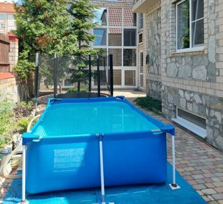 На территории есть открытый детский бассейн, терраса и батут для детей, а также прокат велосипедов и самокатов.