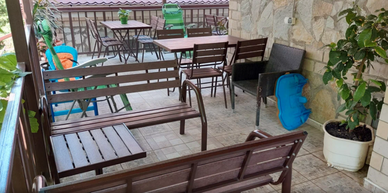 На террасе можно попить чай или кофе или поработать на компьютере, ведь здесь ловит Wi-Fi.