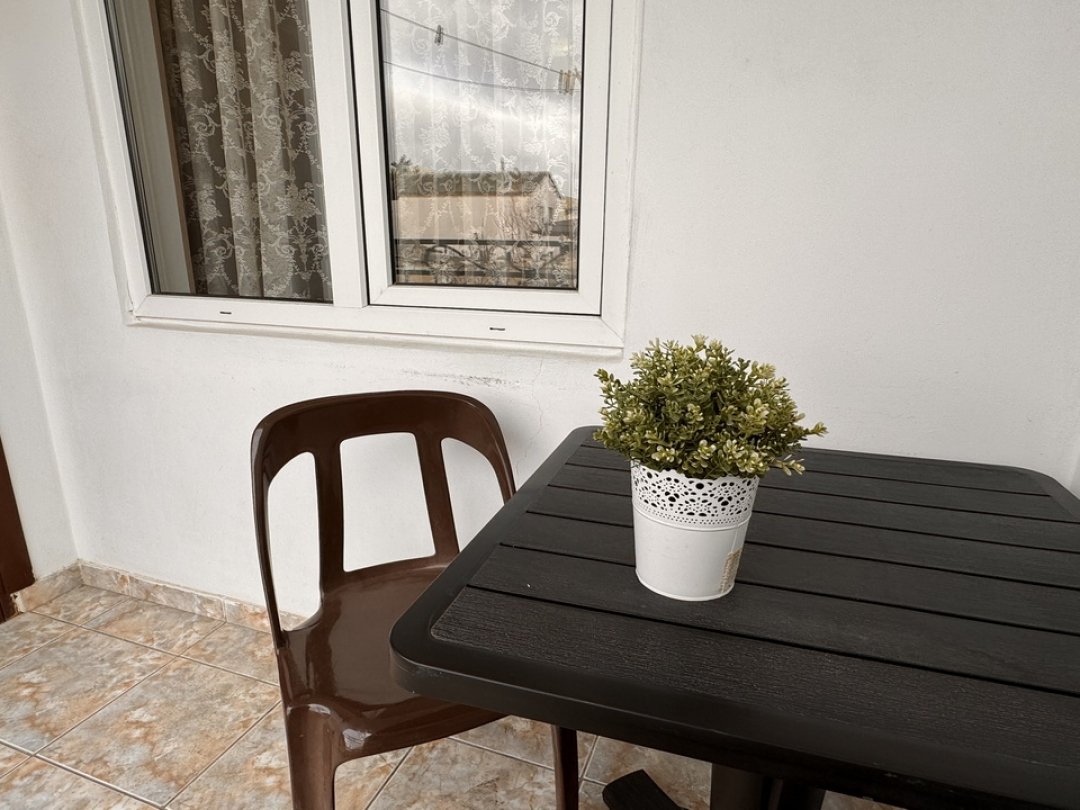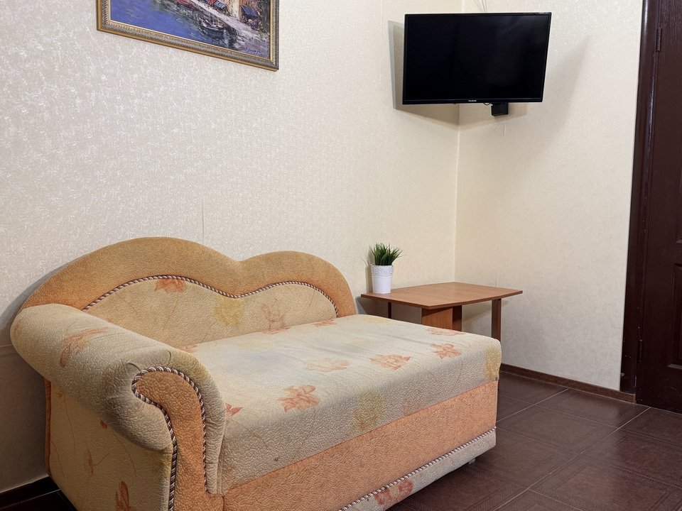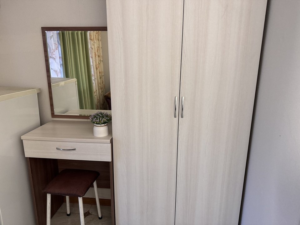 Двухспальная кровать 1.40 м, шкаф, зеркало, прикроватная тумбочка, телевизор, кондиционер, мини-холодильник.