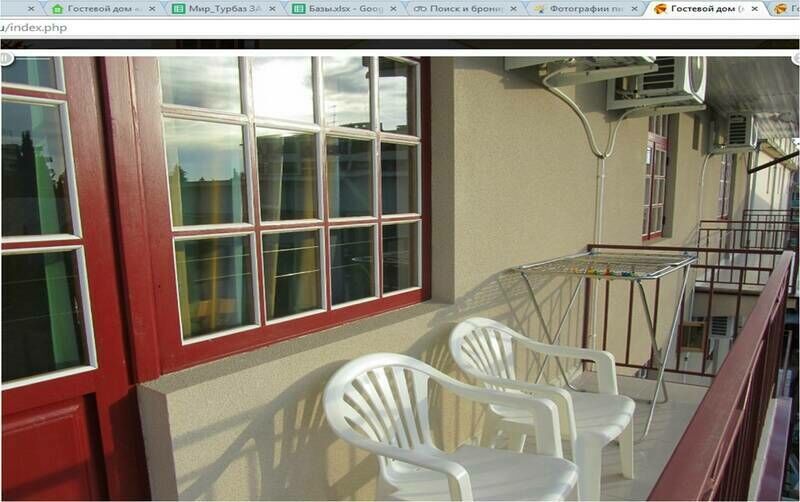 Трехместный номер, имеющий балкон (на балконе: сушилка и два стула).