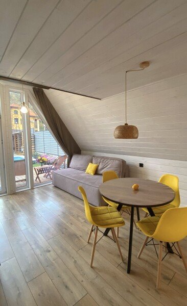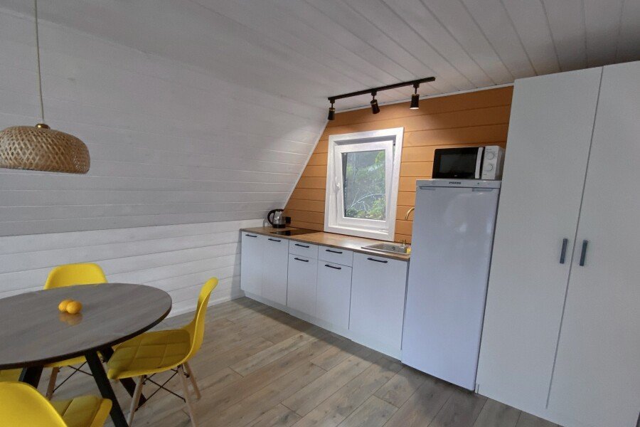 Каждый дом оборудован теплым полом, сплит-системой для поддержания комфортной температуры, бесплатным Wi-Fi, полным комплектом полотенец для каждого гостя, функциональной кухней с современной бытовой техникой и красивой посудой. Для вашего удобства также предусмотрены косметические принадлежности и фен.