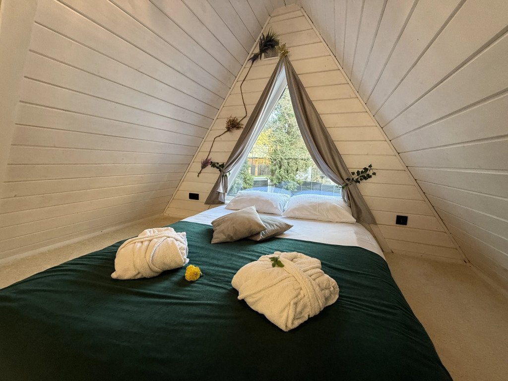 - спальня на втором этаже с видом на горы: двуспальная кровать;