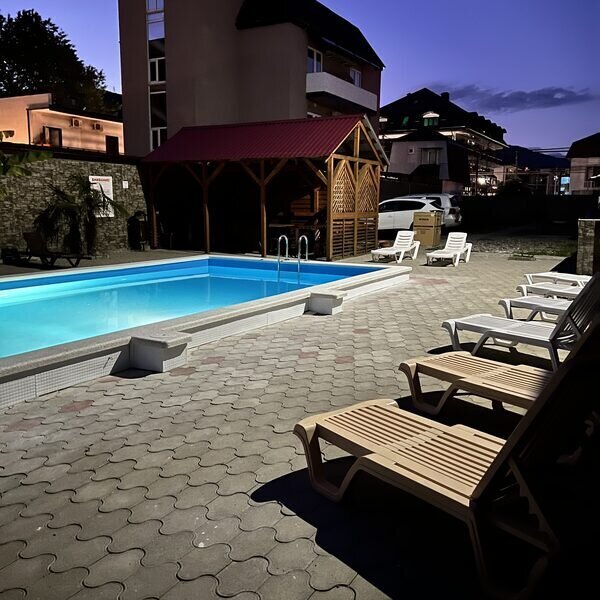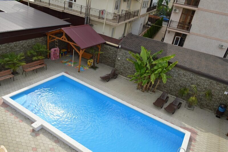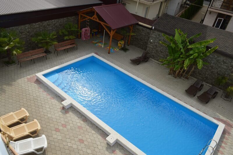 Для удобства отдыхающих в гостевом доме организована общая кухня, есть уличный бассейн, а рядом с ним — зона отдыха с шезлонгами. Среди услуг — интернет, охраняемая парковка, для детей оборудована игровая площадка.