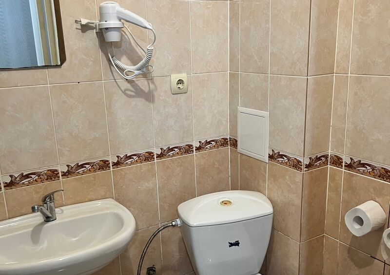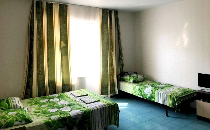 Трехэтажный корпус гостевого дома расположен на закрытой благоустроенной территории. В распоряжении гостей 2-х, 3-х и 4-х местные номера с собственным санузлом. В комнатах есть кондиционер, холодильник, плазменный телевизор.