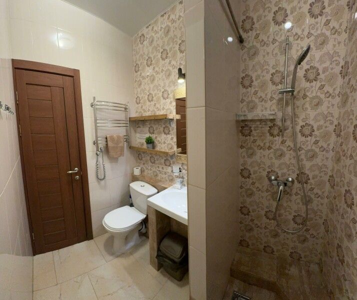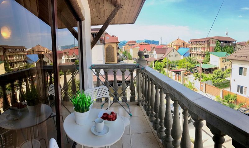 Комфортная студия расположена на 3 этаже и может вместить до 4 гостей: 3 взрослых и 1 ребенка. С балкона открывается романтичный вид на стадион «Айсберг», «Фишт» и «Поющие фонтаны».