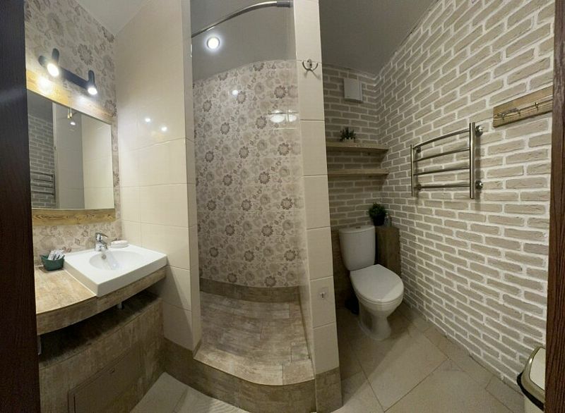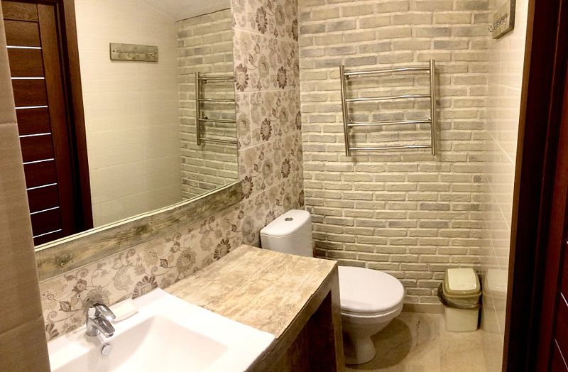 В отдельном санузле установлена душевая кабина, умывальник, полотенцесушитель, удобные полочки, зеркало, фен, стиральная машинка. Гостям предоставляются полотенца и постельное белье. В числе удобств — кондиционер, телевизор, сейф.