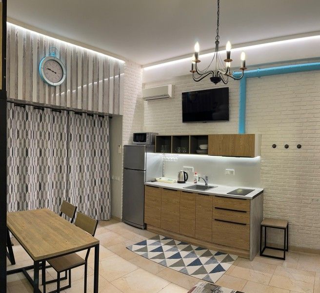 Апарт-отель «LOFT студии» представляет собой идеальное место, где стиль и комфорт гармонично сочетаются, создавая неповторимую атмосферу. Каждая студия оформлена в современном лофт-дизайне и оснащена всем необходимым для комфортного проживания, а мини-кухня с посудой, холодильник и плита позволят вам готовить любимые блюда, не выходя из дома.