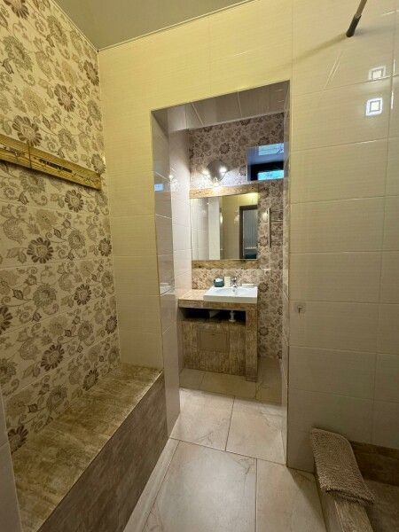 Особое внимание заслуживает баня, выполненная из новозеландской сосны и оснащенная инновационной печью «Эрмак», которая наполняет пространство теплом и уютом благодаря использованию нефритовых камней. Это идеальное место для отдыха и восстановления сил в кругу близких, где вы сможете насладиться роскошными банными процедурами и ощутить полное единение с природой.