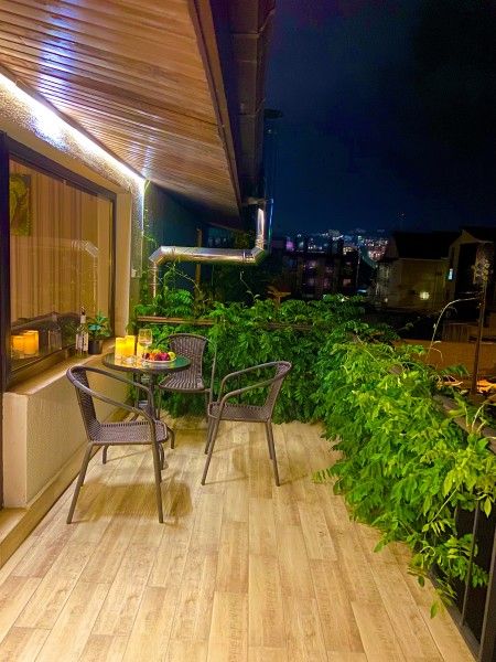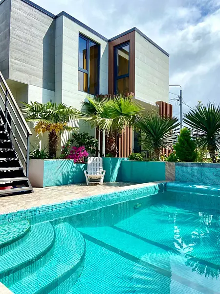 Читать полностьюНа свежем воздухе вас ожидает уютная зона отдыха с бассейном, а чуть выше на втором этаже находится терраса, укомплектованная диванами, столом и шезлонгами для комфортного времяпрепровождения. Зона отдыха доступна для гостей с 9:00 – 23:00, предлагая атмосферу расслабления и уединения.