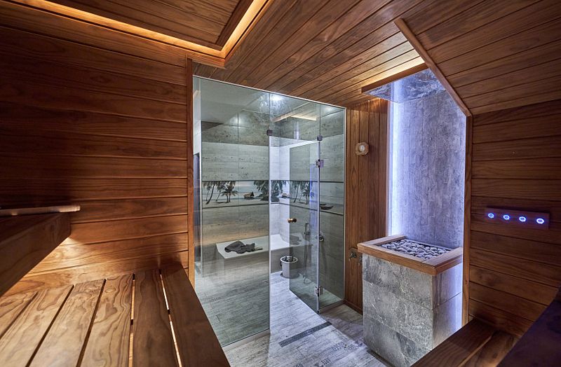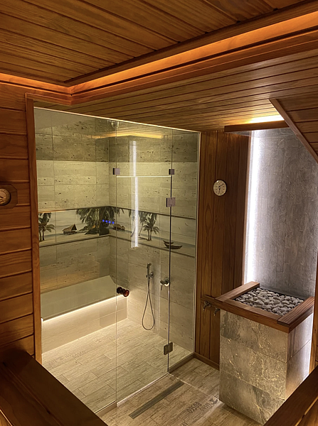 В центре бани расположена парилка, выполненная из новозеландской сосны, с премиальной печью «Эрмак», в которой используется более 200 кг нефритовых камней для создания идеальных условий для расслабления. Автоматическая подача пара избавляет от необходимости использовать ковши, позволяя вам полностью сосредоточиться на удовольствии.