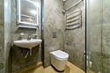Санузел оснащен душевой кабиной, умывальником, унитазом, зеркалом с подсветкой, феном.