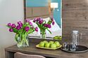 Санузел оснащен душевой кабиной, умывальником, унитазом, зеркалом с подсветкой, феном. В прихожей багажная тумба, настенная вешалка для верхней одежды.