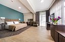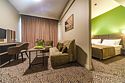 Номер состоит из одной комнаты, санузла, прихожей. В номере имеются 2 кровати, 0/1/2 кресло-кровать стул, стол туалетный с зеркалом, набор посуды (графин и две чашки), 2 прикроватных тумбочки, 2 прикроватных бра, телевизор, холодильник, телефон, сейф, шкаф.