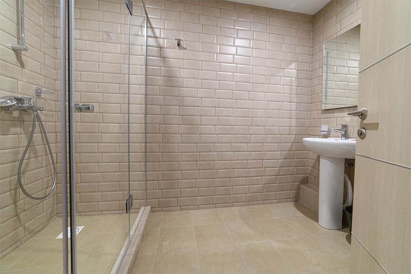 Санузел оснащен: специализированной душевой кабиной, умывальником, унитазом оборудован поручнем, зеркалом с подсветкой, феном.