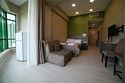 Номер состоит из одной комнаты, санузла, прихожей. В номере имеются: 1 кровать, стул, кресло-кровать, стол туалетный с зеркалом, набор ,посуды (графин и две чашки), 1 журнальный столик, 2 прикроватных тумбочки, 2 прикроватных бра, телевизор, холодильник, телефон, сейф, шкаф.