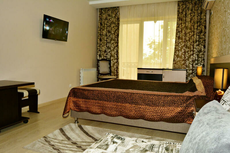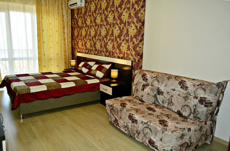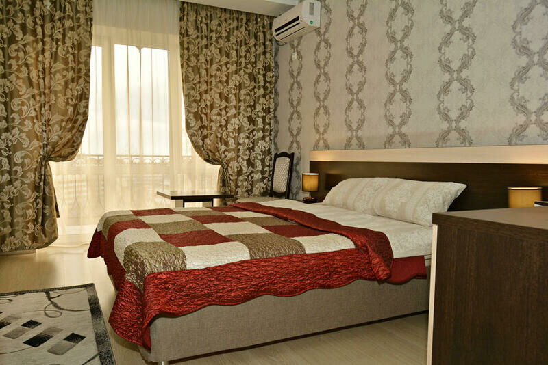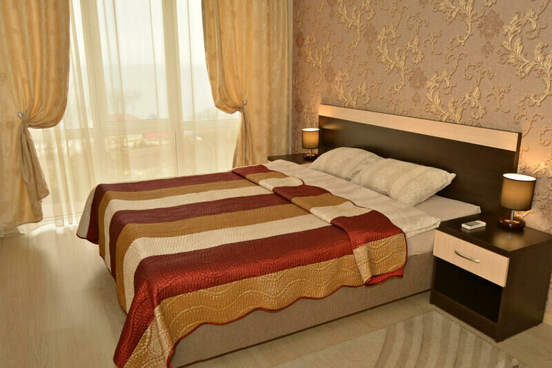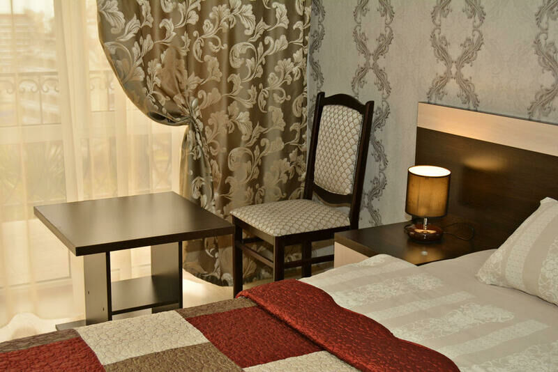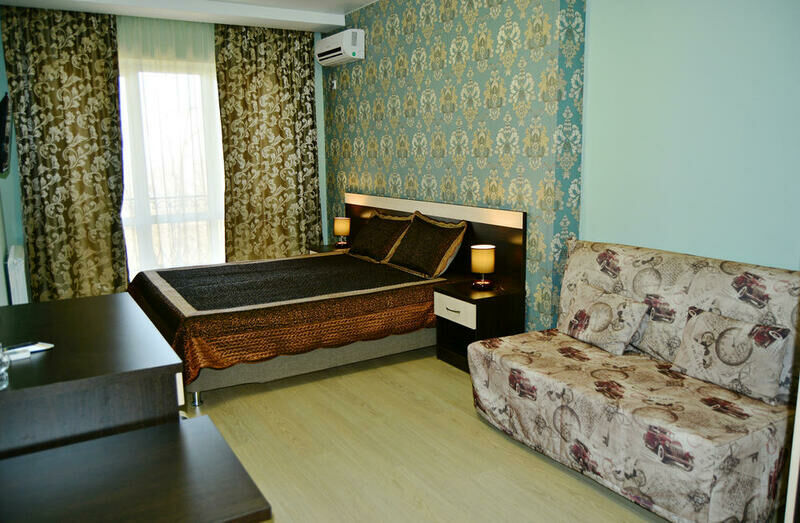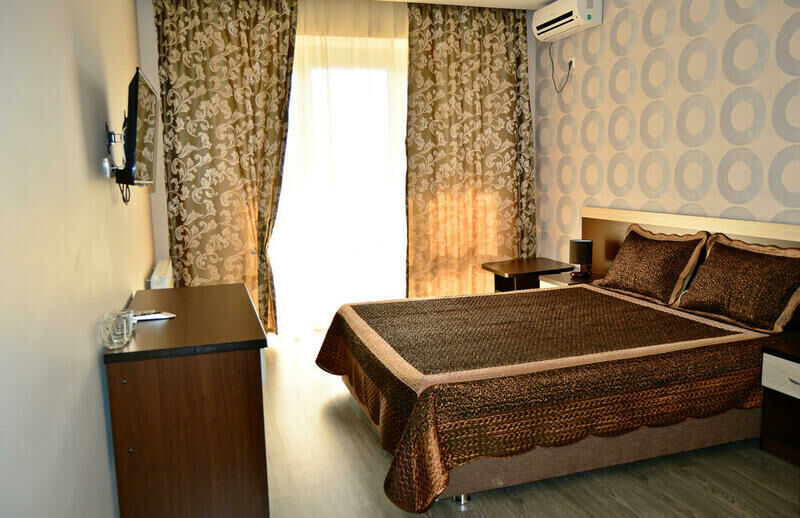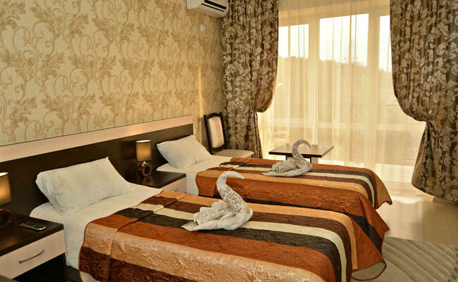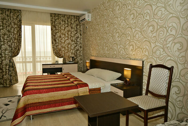 Отельный комплекс, состоящий из одного 4-этажного корпуса. Располагается в 350 метрах от моря. Номерной фонд единовременно размещает 70 отдыхающих, предлагает гостям стандартные однокомнатные и двухкомнатные номера категории Люкс. В номерах светлый приятный интерьер, разные обои в каждом номере, санузел в каждом номере, кондиционер, есть телевизор ЖК, электрочайник, мини-холодильник и удобные кровати с ортопедическими матрасами. Имеется бесплатный Wi-Fi-доступ. Из окон некоторых комнат открываются красивые виды на море. Номера преимущественно с балконами.