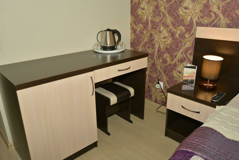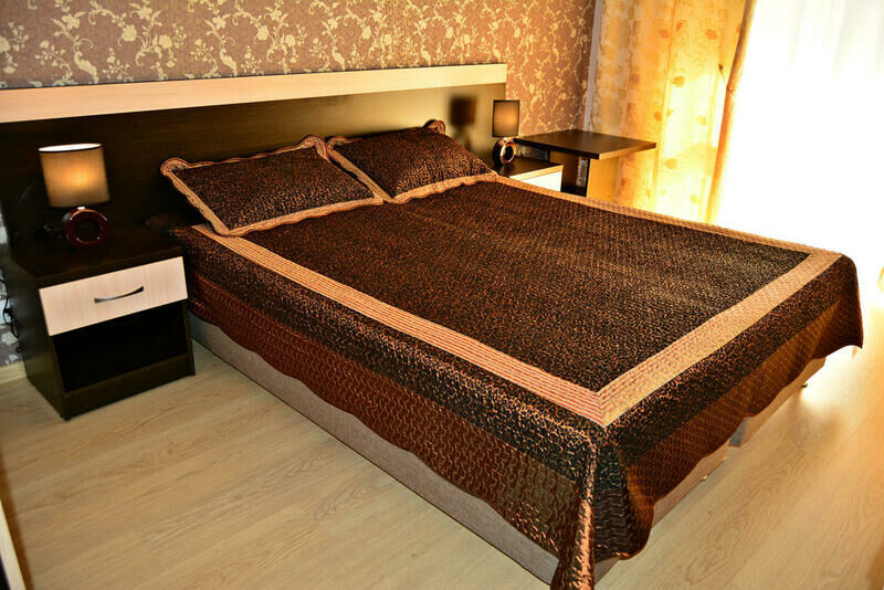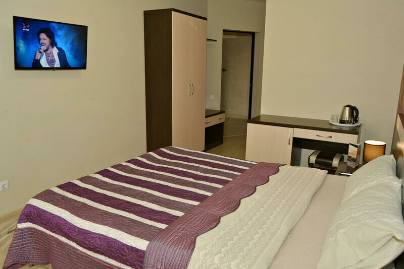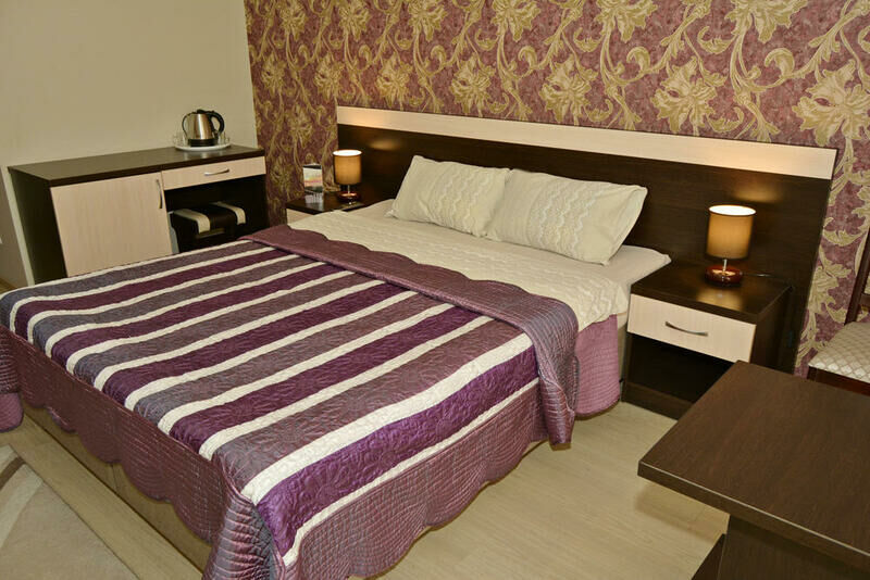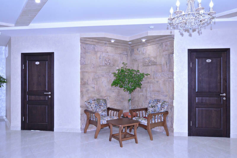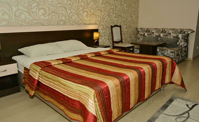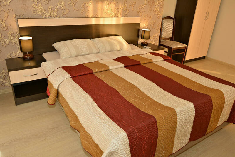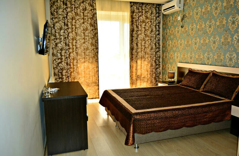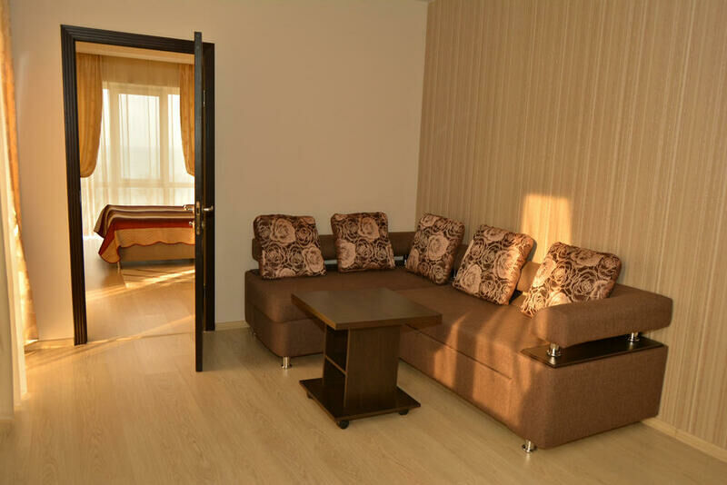 Отельный комплекс, состоящий из одного 4-этажного корпуса. Располагается в 350 метрах от моря. Номерной фонд единовременно размещает 70 отдыхающих, предлагает гостям стандартные однокомнатные и двухкомнатные номера категории Люкс. В номерах светлый приятный интерьер, разные обои в каждом номере, санузел в каждом номере, кондиционер, есть телевизор ЖК, электрочайник, мини-холодильник и удобные кровати с ортопедическими матрасами. Имеется бесплатный Wi-Fi-доступ. Из окон некоторых комнат открываются красивые виды на море. Номера преимущественно с балконами.