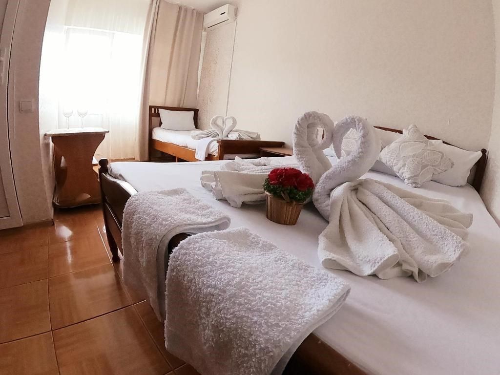 Комфортабельный однокомнатный номер _____________________________________________________ В номере: 1 двуспальная и 1 односпальная кровати, прикроватные тумбочки, шкаф-купе с зеркалом, стол, стулья, ЖК-телевизор, холодильник, кондиционер, балкон или терраса. ______________________________________________________ В ванной: душевая кабина, туалет, раковина, набор полотенец, средства личной гигиены.Услуги и удобства